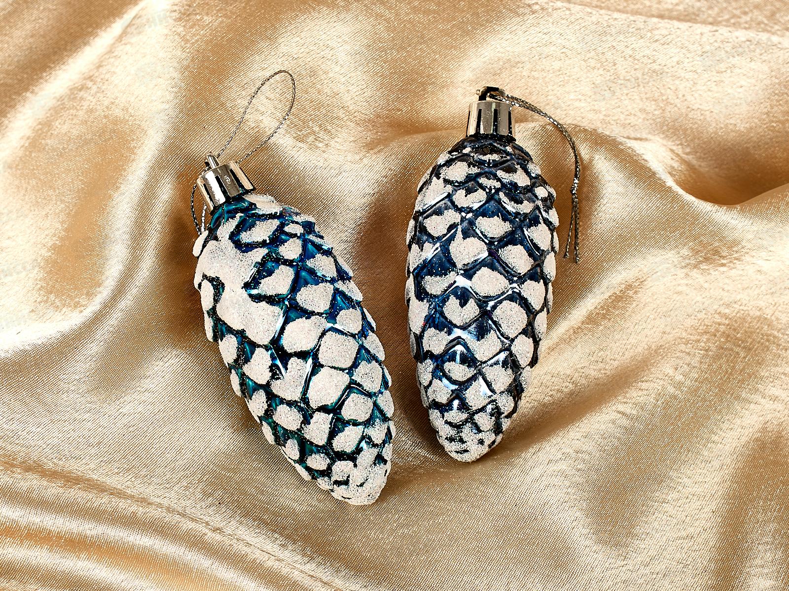 Елочные игрушки - один из самых важных атрибутов Нового года и Рождества. Ни один человек не представляет себе этот праздник без новогодней елки, украшенной этими яркими игрушками, переливающимися в свете гирлянды. Набор "Таинственное очарование" состоит из 2 елочных игрушек сапфирового цвета в форме шишки. Размер одной игрушки - 9 см. Создайте атмосферу сказки и праздника в своем доме!