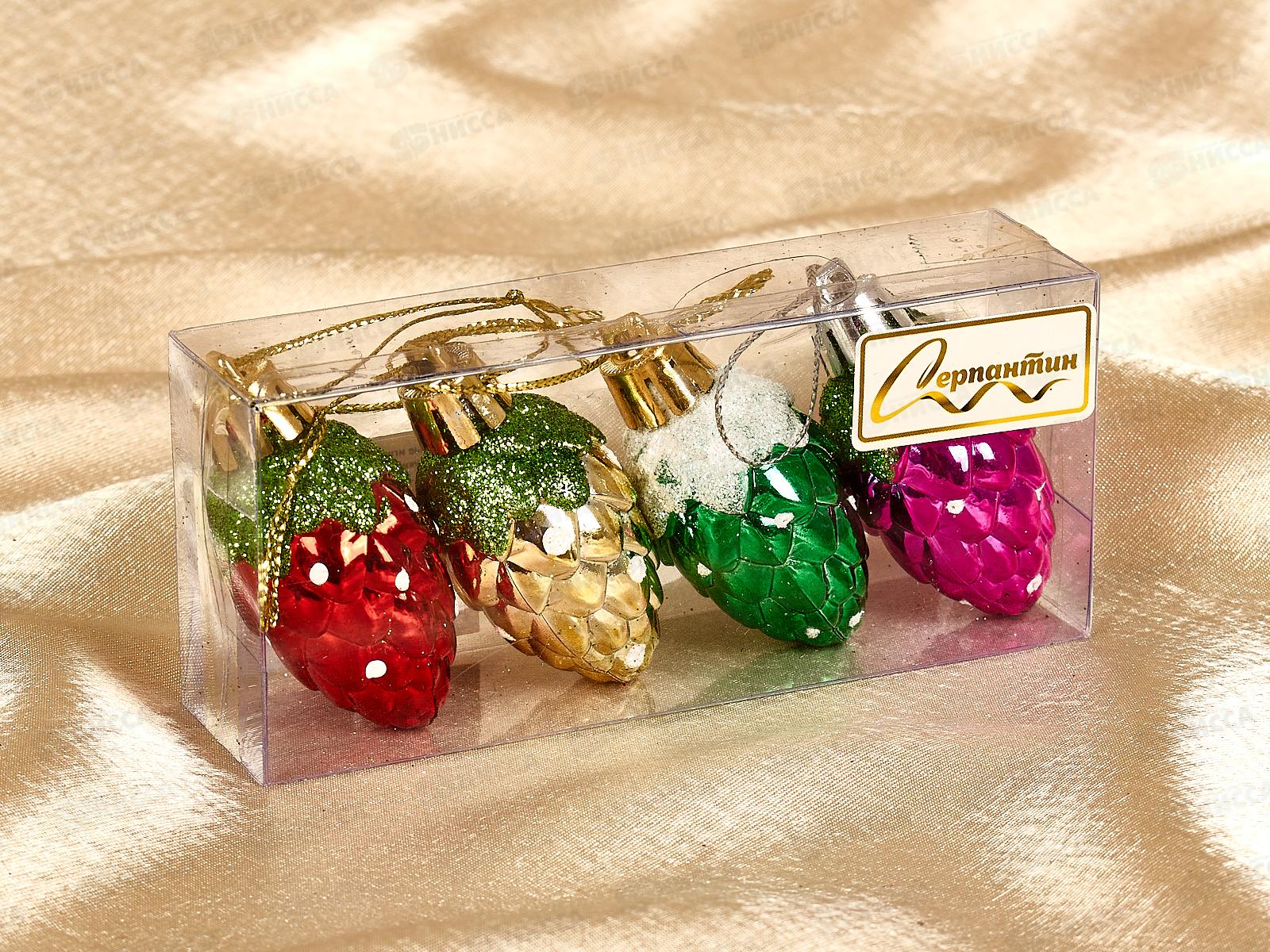 Набор елочных украшений 4шт Шишечки 4см микс 201-0391