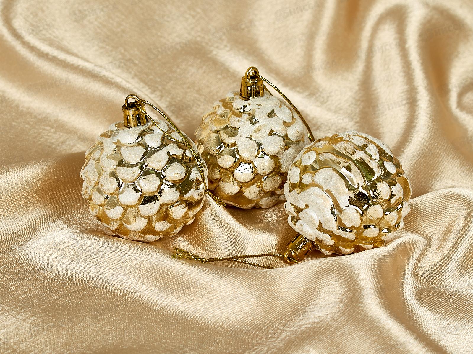 Набор елочных украшений 3шт Шишки нарядные 6см зол/бел 916-705