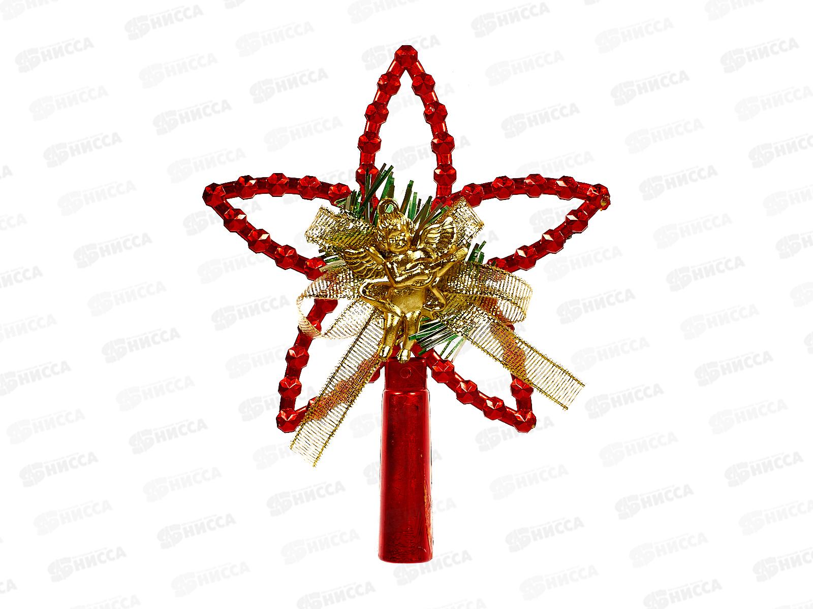 Звезда на елку "Ангел" с бантом 11,5*14,5см красный 201-1102
