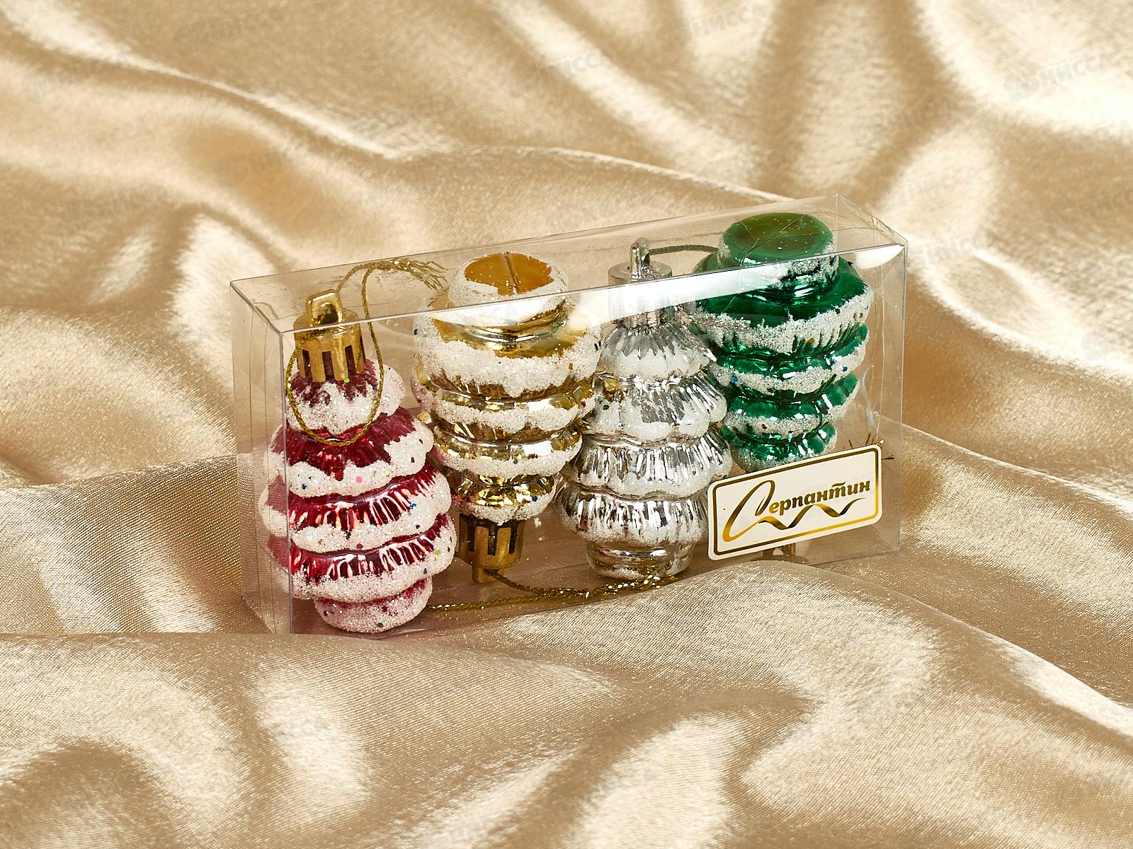 Набор елочных украшений 4шт Елочка 6*3,5см 201-0392