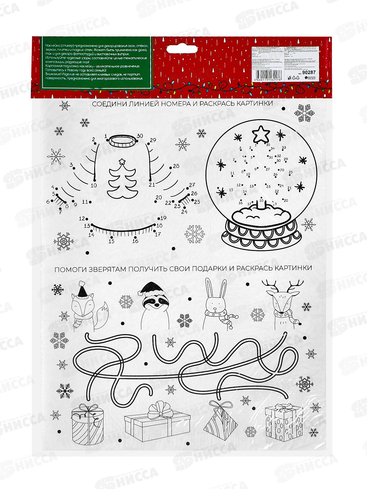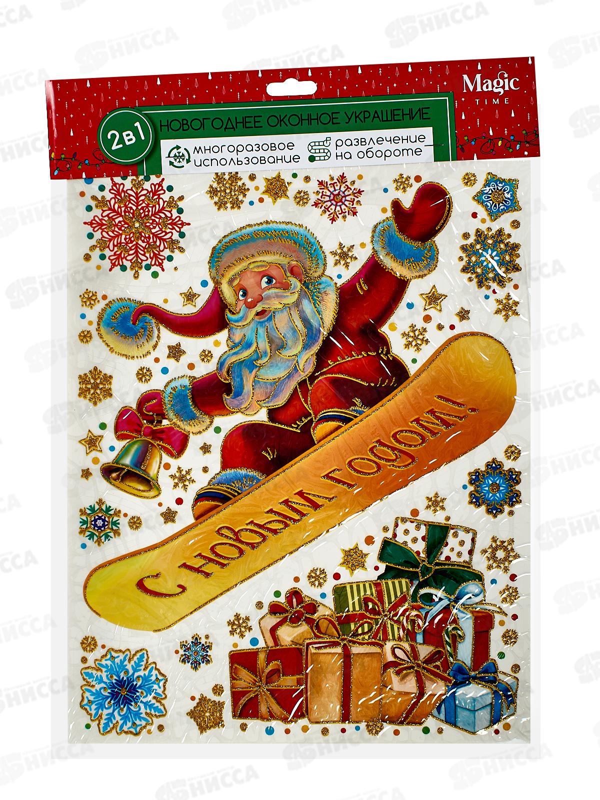 Наклейка на стекло Дед Мороз на сноуборде, 30х38, 90287