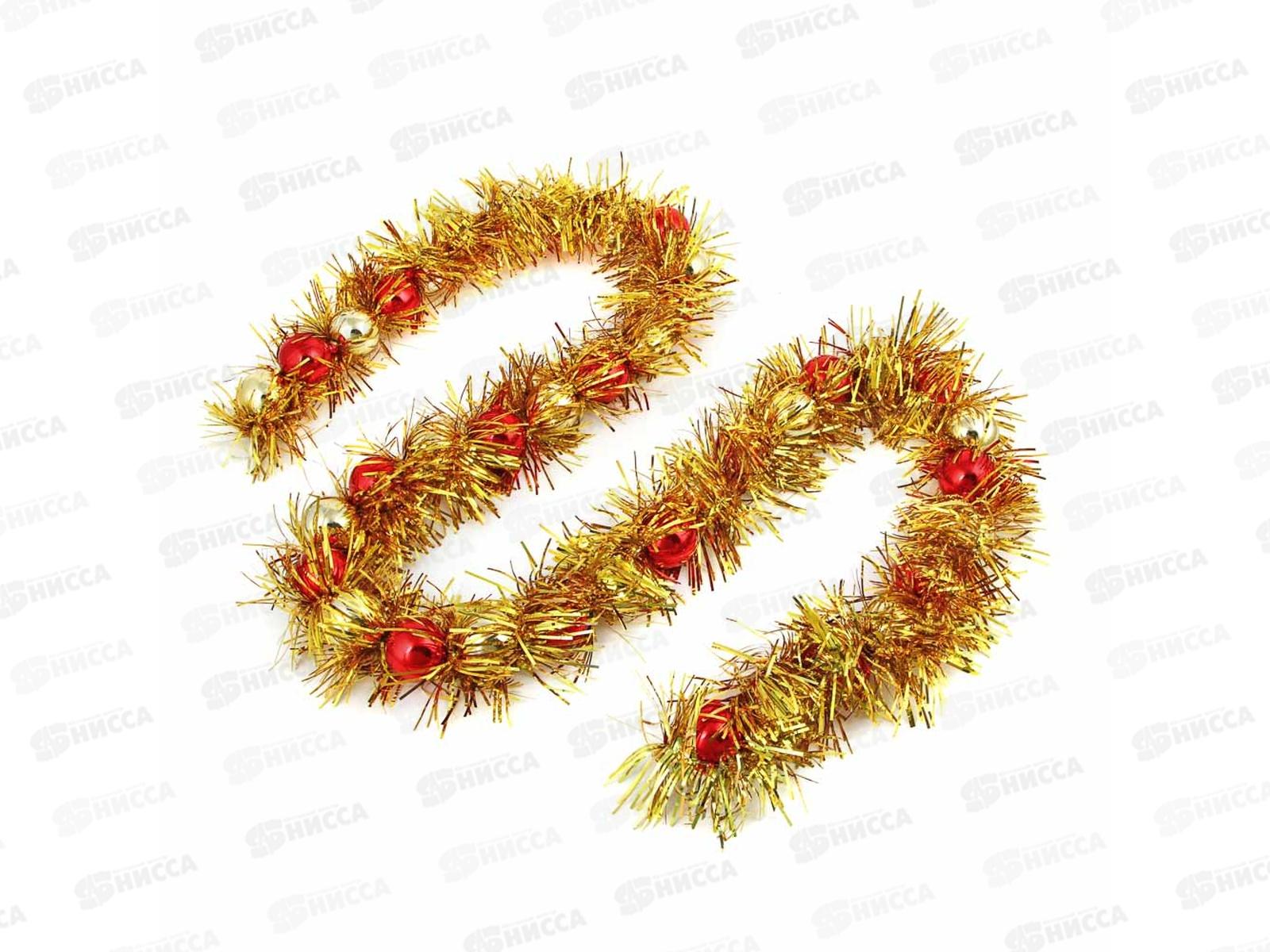Бусы на елку 1,8м из шаров с мишурой Золото с красным 378-286 г