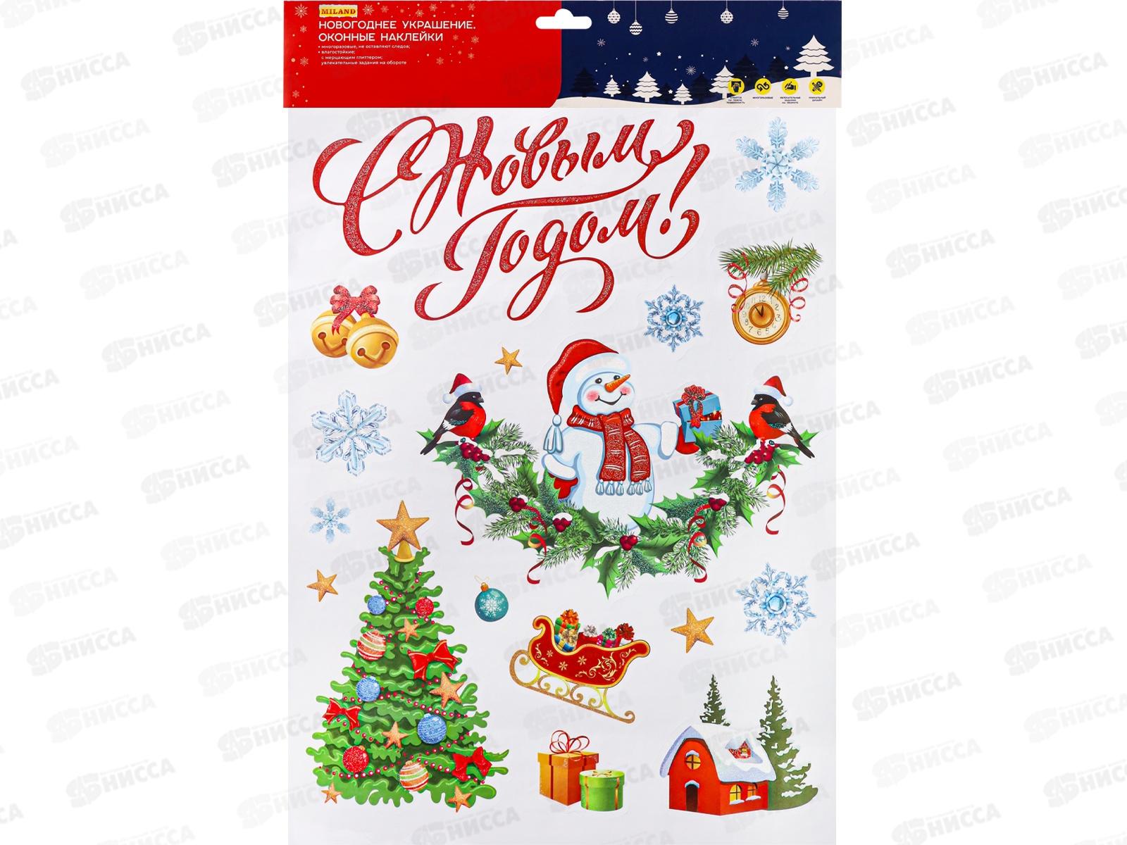 Наклейка на стекло "Зимний снеговичок" 30*40см, НУ-7042