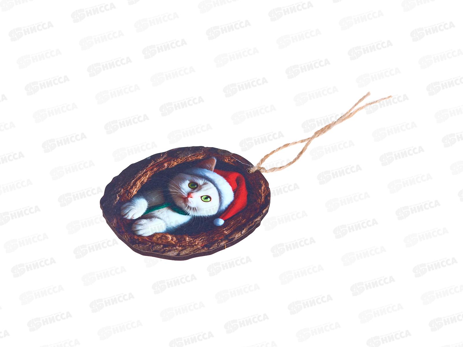 Подвеска на елку дерево нг-ПЦД-012 Белый котик в дупле двусторонняя
