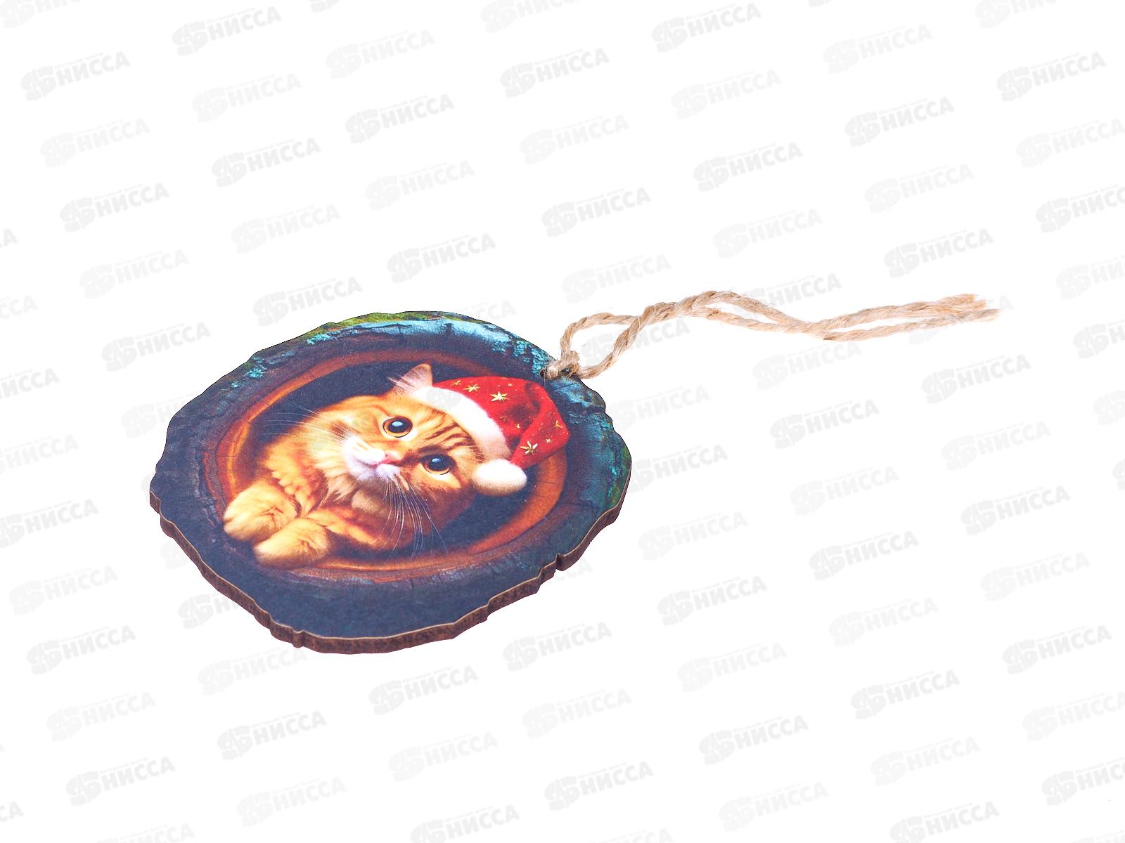 Подвеска на елку дерево нг-ПЦД-013 Рыжий кот в дупле двусторонняя