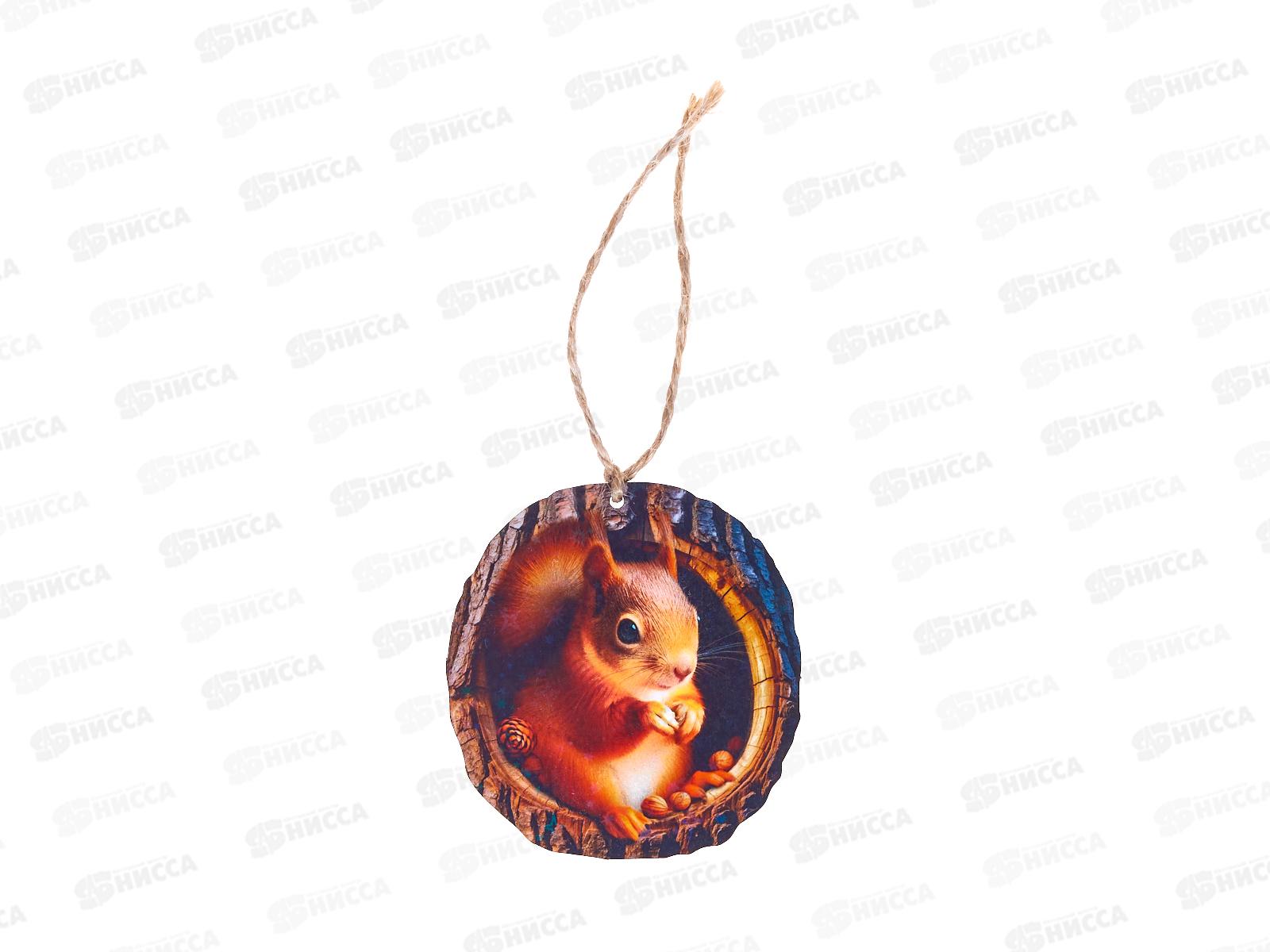 Подвеска на елку дерево нг-ПЦД-021 Белка в дупле двусторонняя