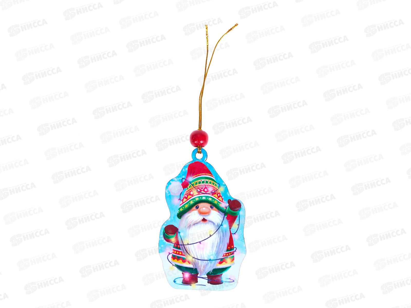 Подвеска на елку дерево нг-ПЦД-028 Гном с гирляндой двусторонняя