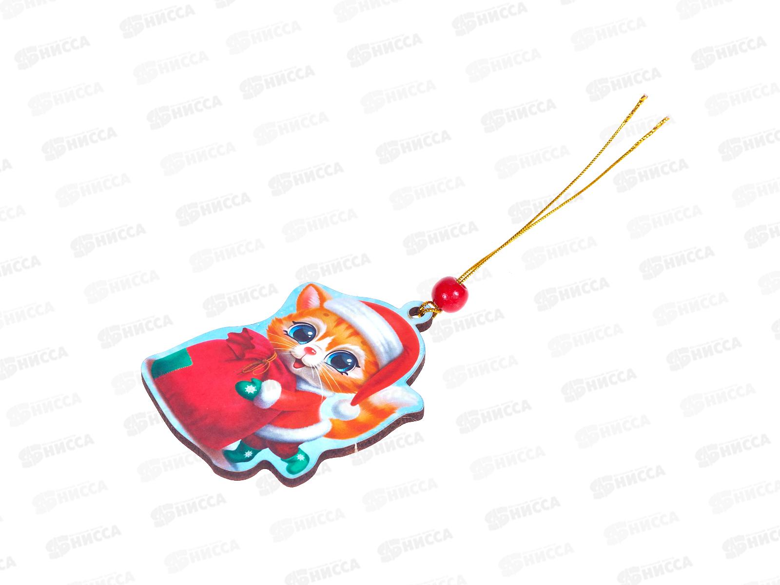 Подвеска на елку дерево нг-ПЦД-042 Зверята Котик двусторонняя