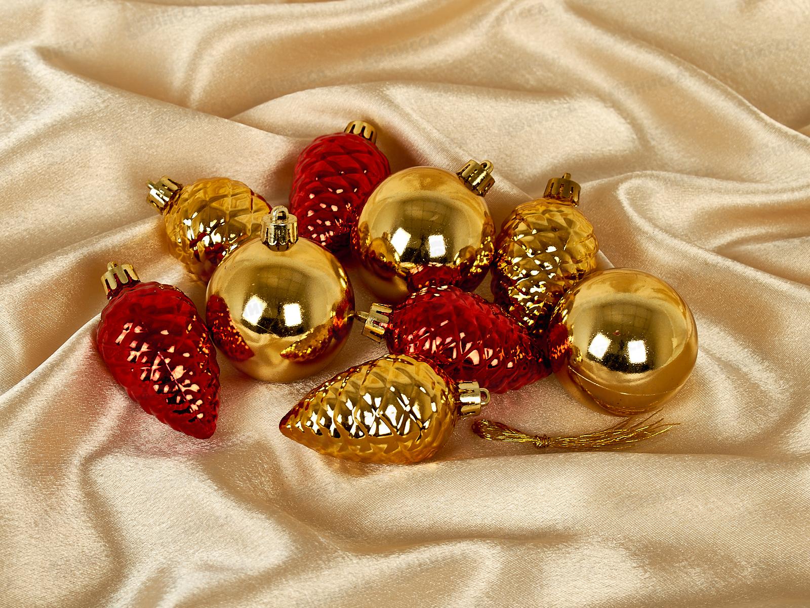 Набор украшений "Джоан" пласт. красно-золотой 9 шт 3,4см 6531990