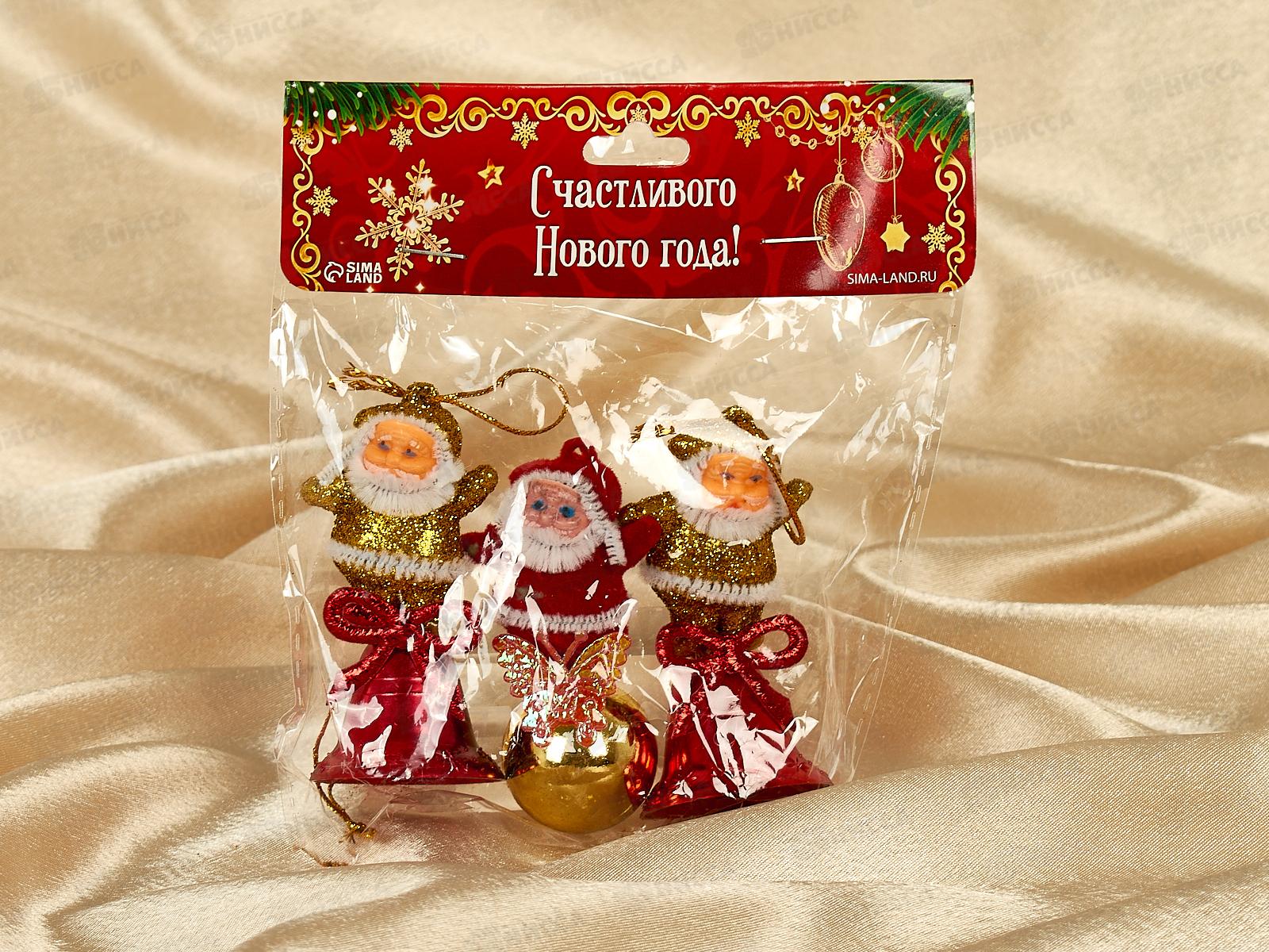 Украшение елочное Дедушка Мороз н-р 3шт 3*7 см микс 5043663