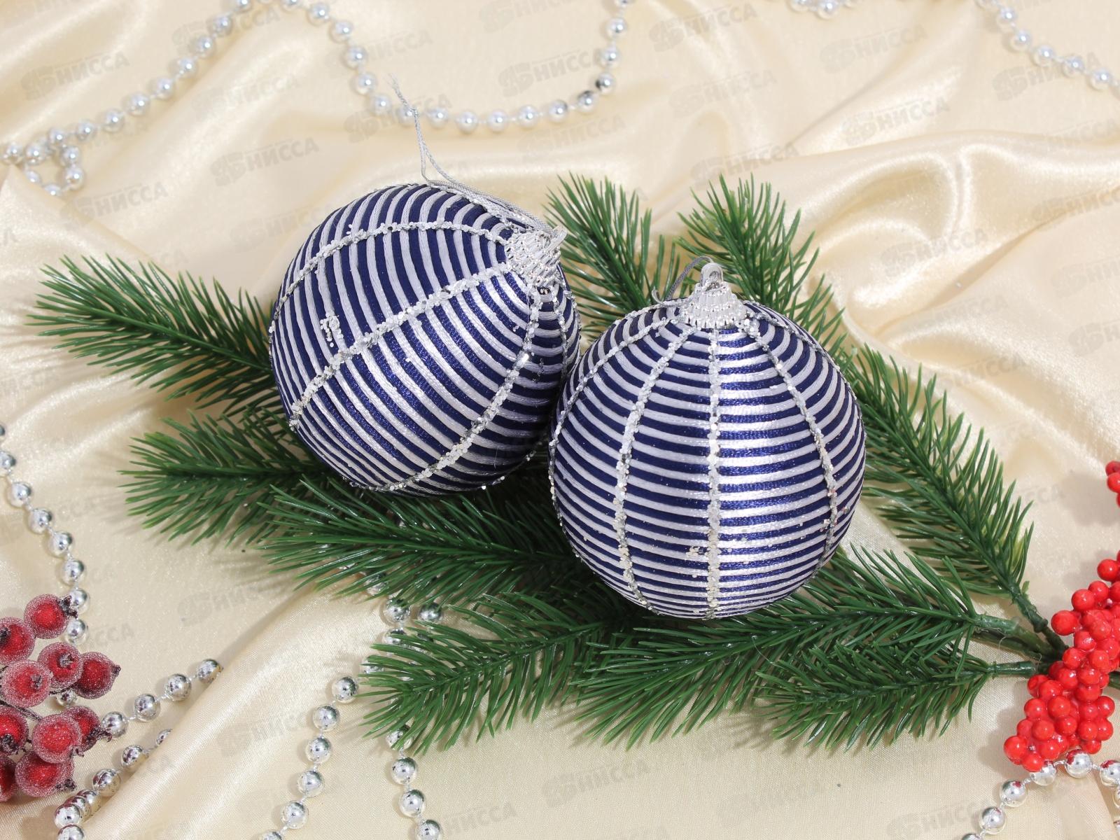 Набор шаров 2шт, 8см, "Серебр. полоски" темно-синий, SY19EZ-081 АТМ