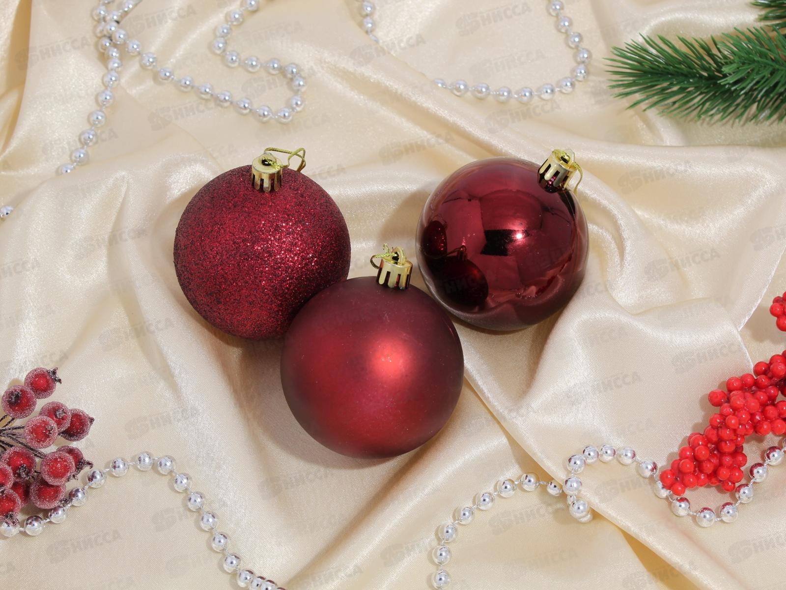 Набор шаров 3шт, d 7см, цвет: бургунди, SY16QJHB192-7-7 АТМ