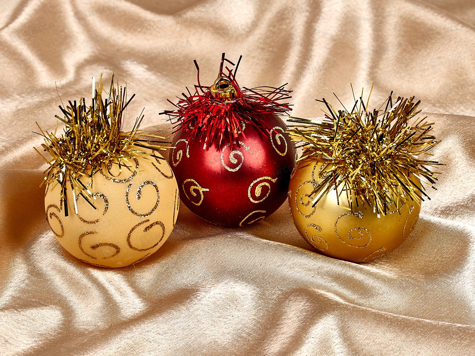 Набор шаров 3шт 6см завитки с мишурой, 3цв., Е70254