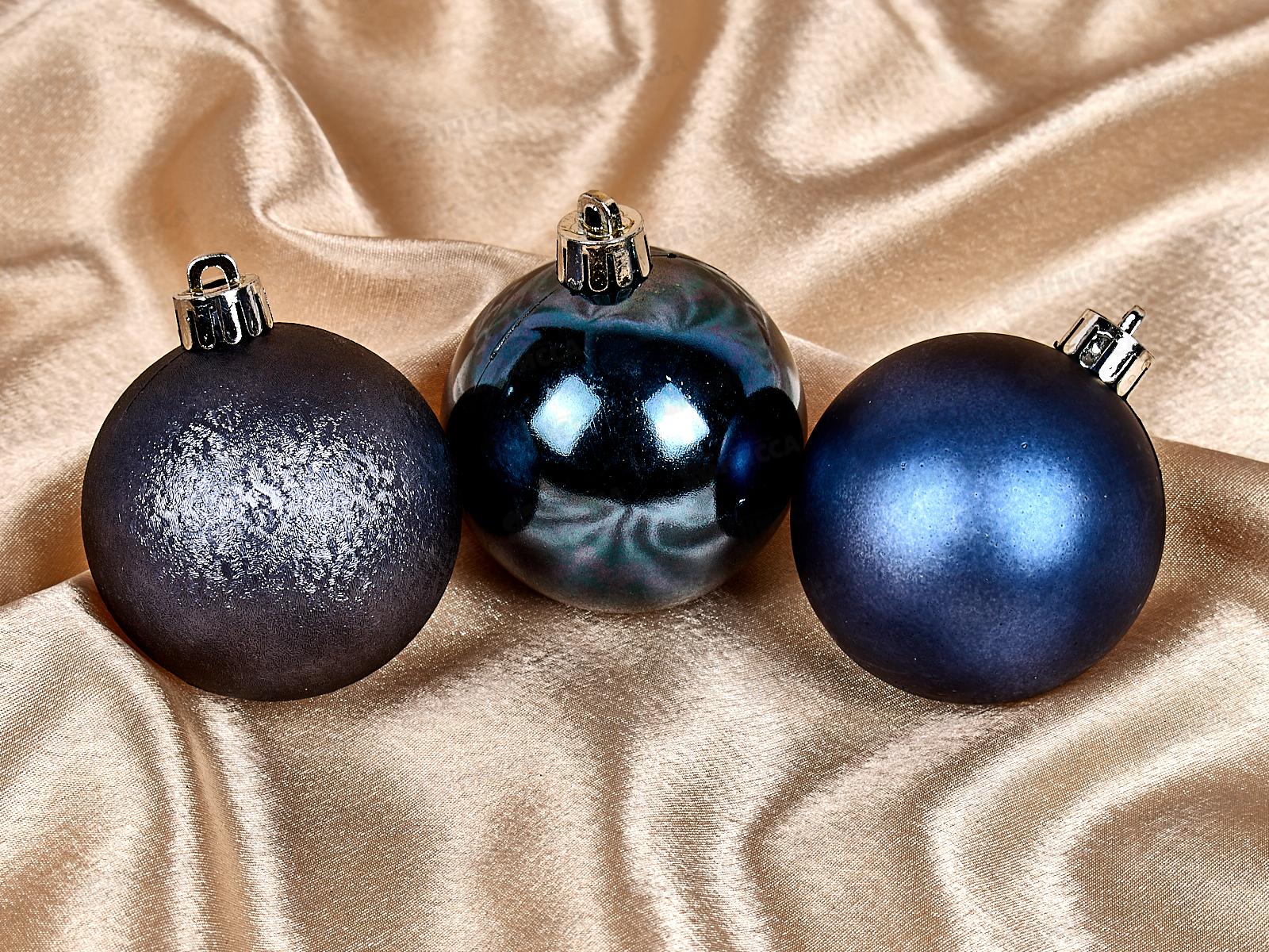 Набор елочных шаров, цвет синий – традиционное новогоднее украшение, которое эффектно смотрится среди зеленой хвои и позволяет создать стильное праздничное оформление интерьера. Несколько шаров можно вплести в венки из еловых или сосновых веток, развесить по дому или по офису на длинных подвесах, собрать в гроздь и закрепить на люстре, в арке, на окне между шторами.