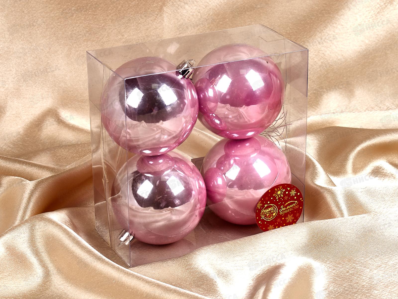 Набор елочных шаров 4шт, 8см "Глянец" розовый 1009336