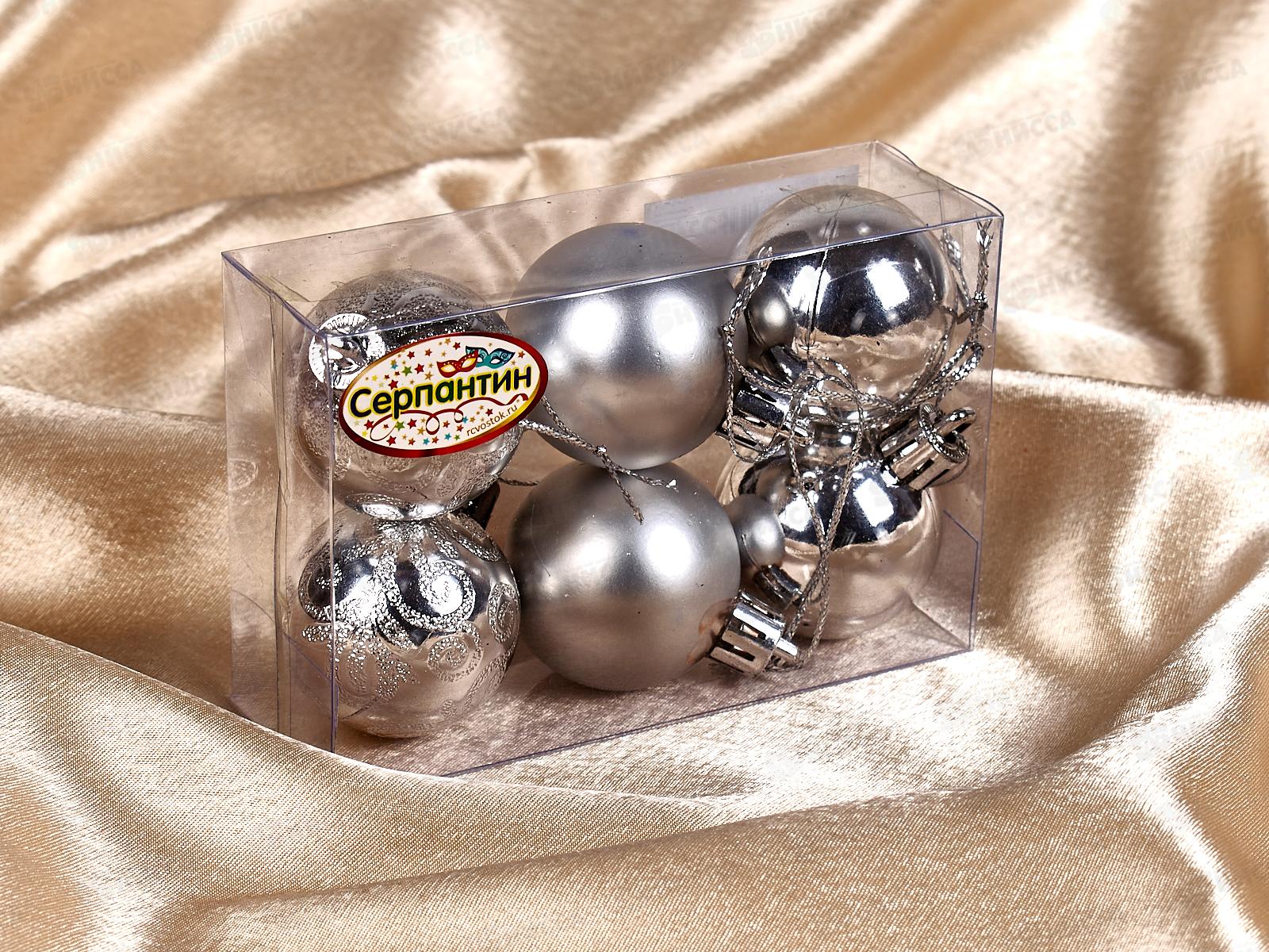 Набор елочных шаров 6шт "Микс фактур" 4см серебро 183-844