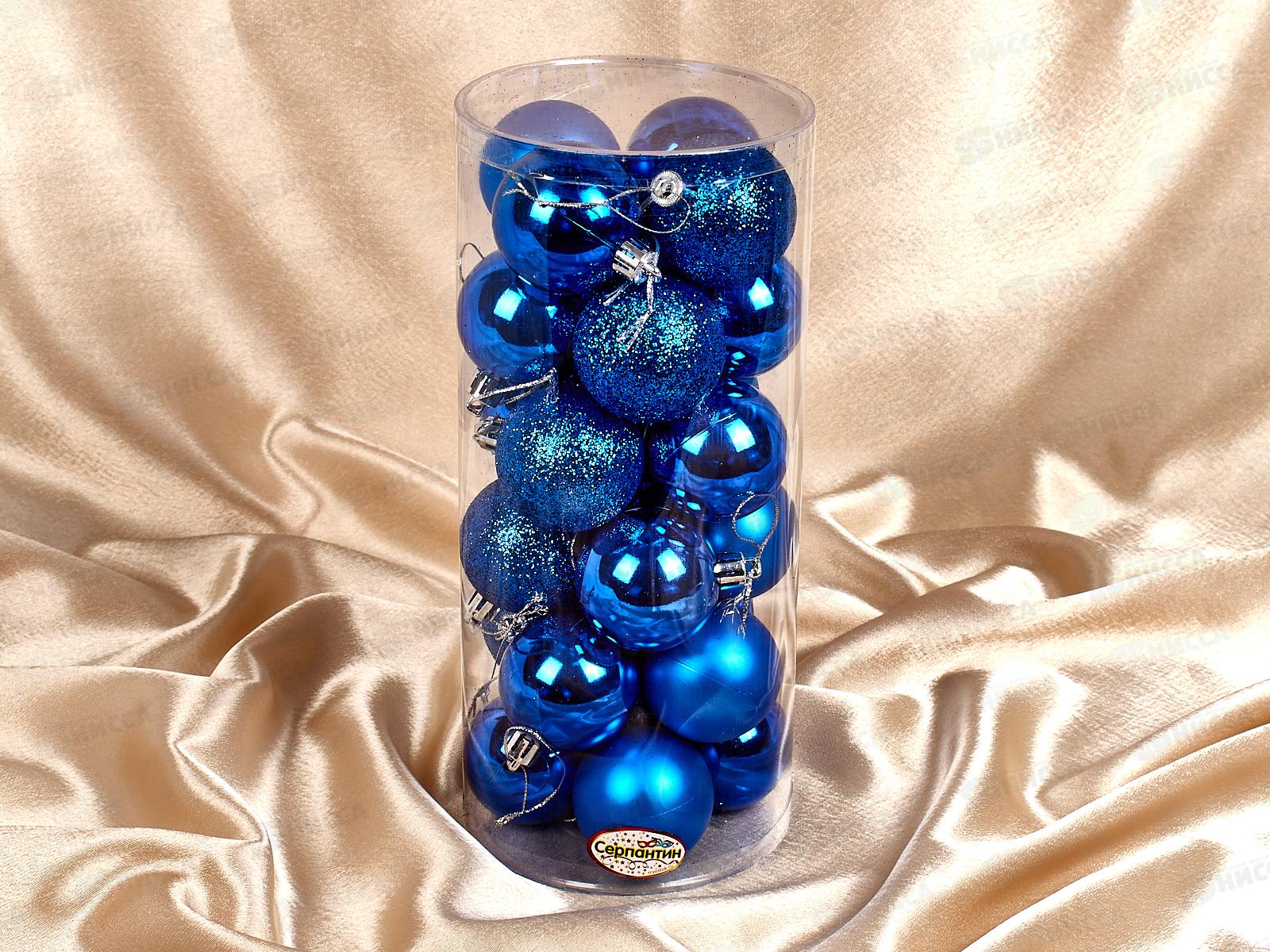 Набор елочных шаров 24шт "Микс фактур" 5см синий 201-0638