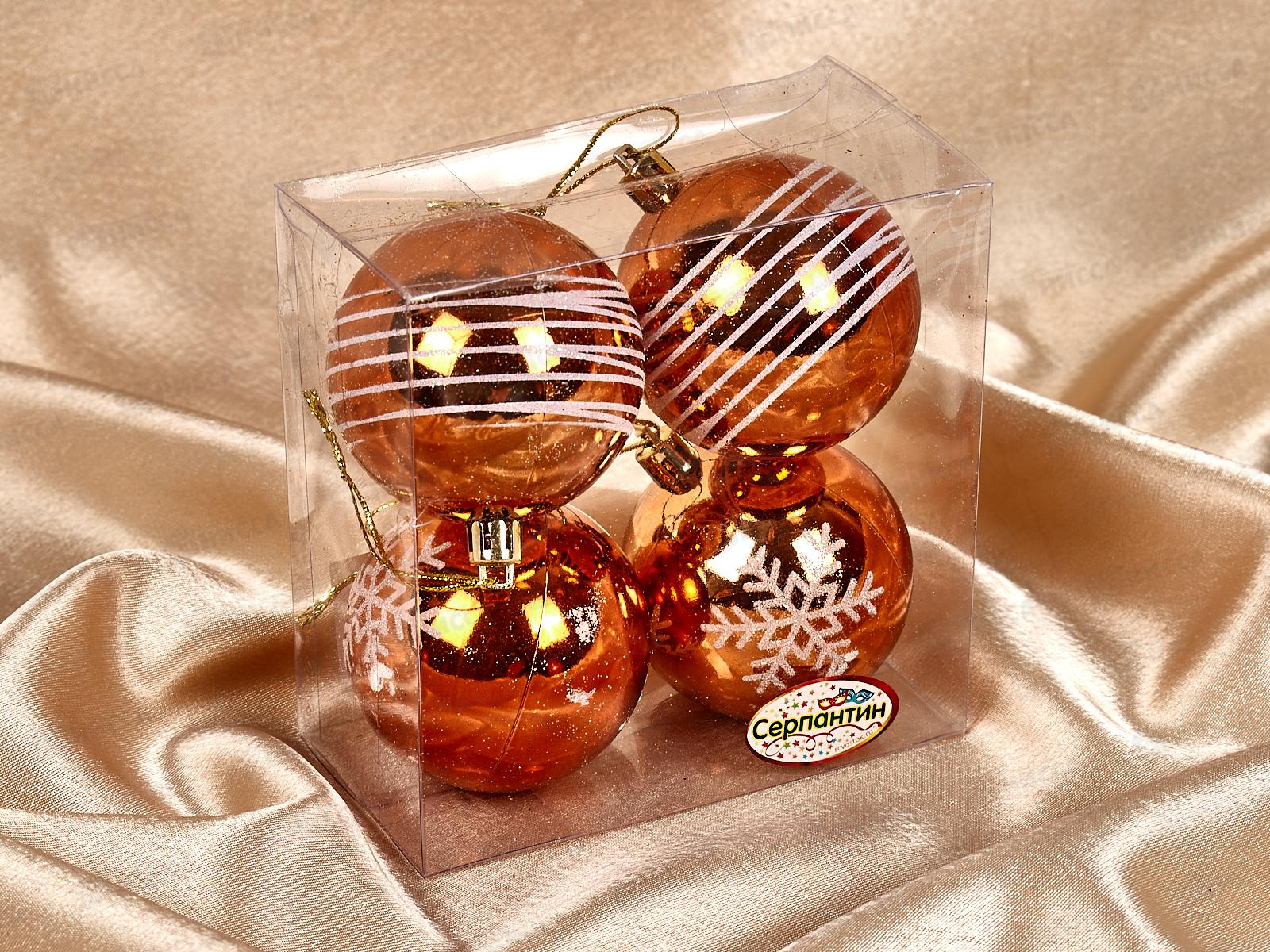 Набор елочных шаров 4шт "Снежные нити" 6см оранж/белый 201-1628