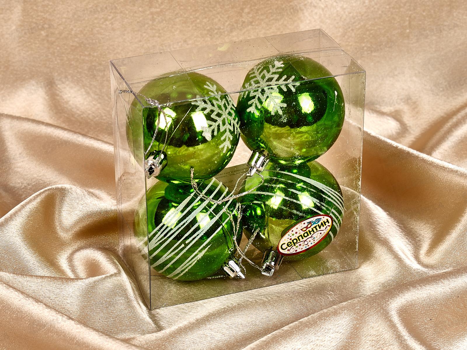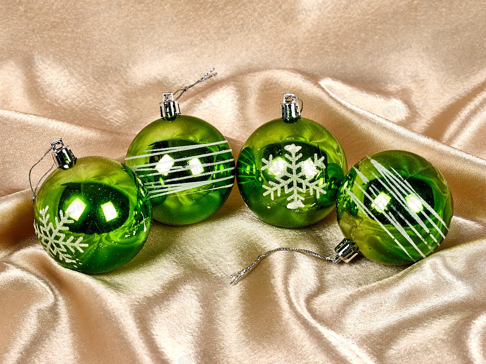 Набор елочных шаров 4шт "Снежные нити" 6см салатовый/белый 201-1629