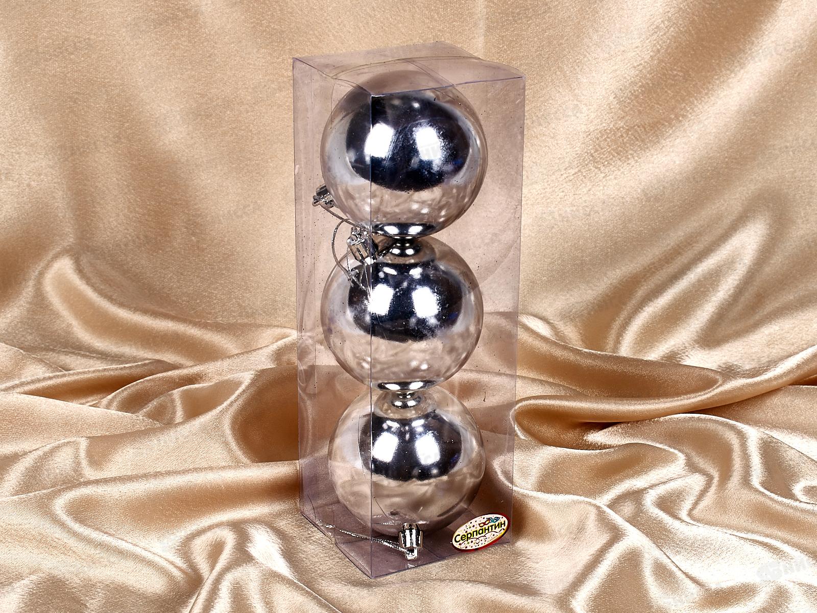 Набор елочных шаров 3шт "Глянец" 8см серебро 183-921