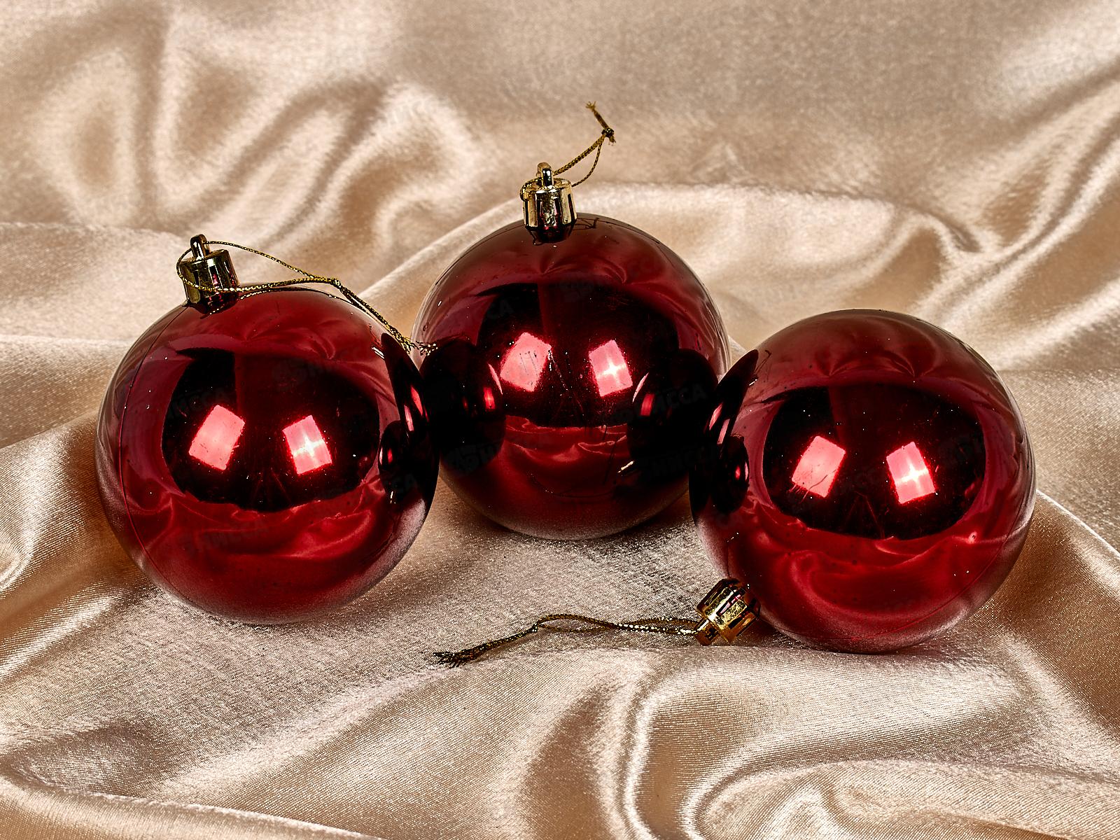 Набор елочных шаров 3шт "Глянец" 8см темный рубин 201-1757