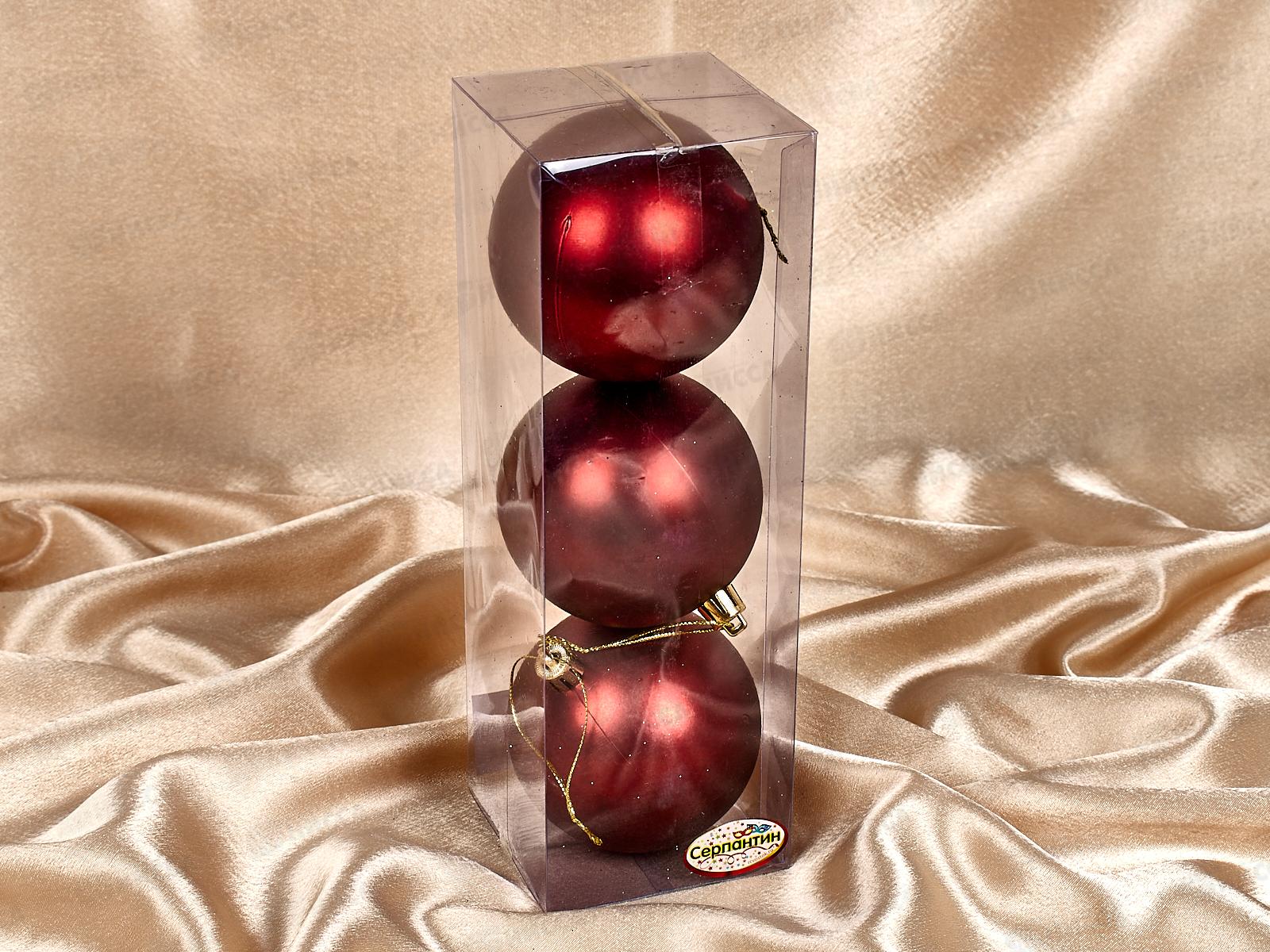 Набор елочных шаров 3шт "Матовый" 8см темный рубин 201-1759