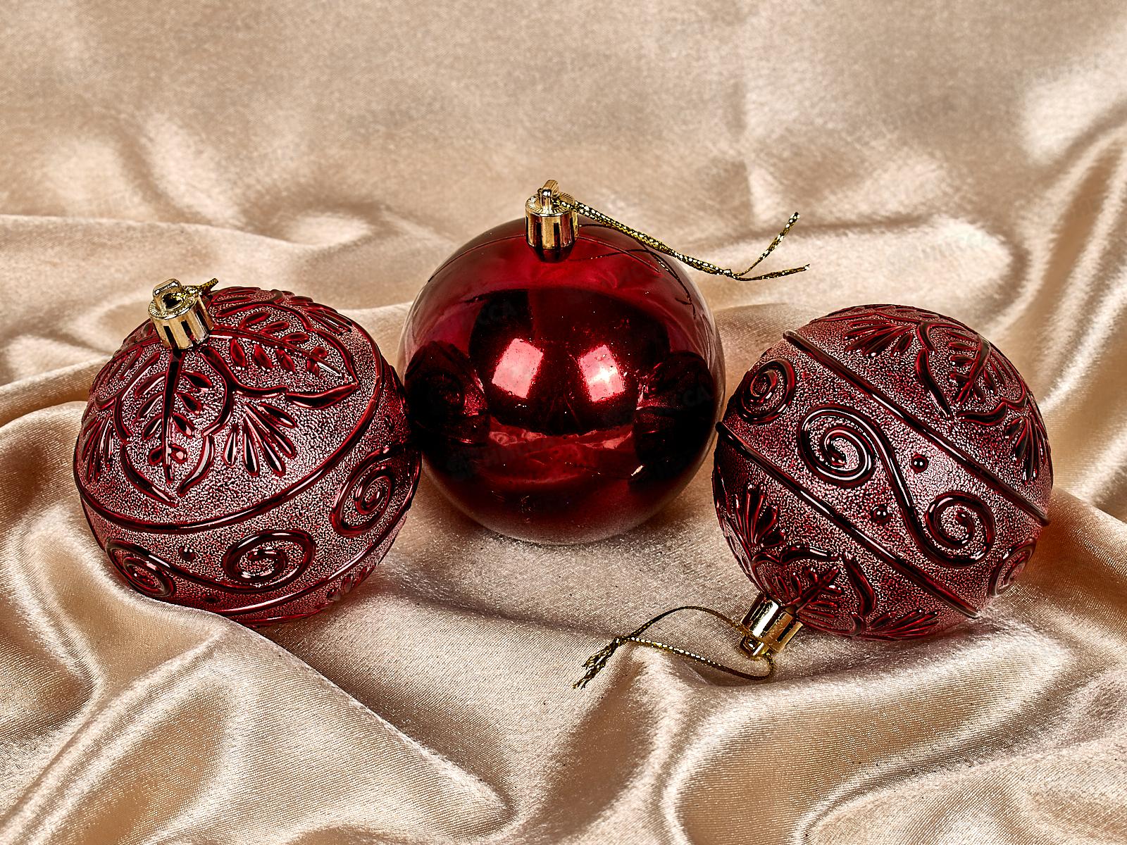 Новогодние шары "Микс фактур" 8 см, цвет темный рубин - это классика праздничного украшения. Они станут прекрасным оформлением офиса в строгом стиле или замечательным буйством красок на домашней елке.