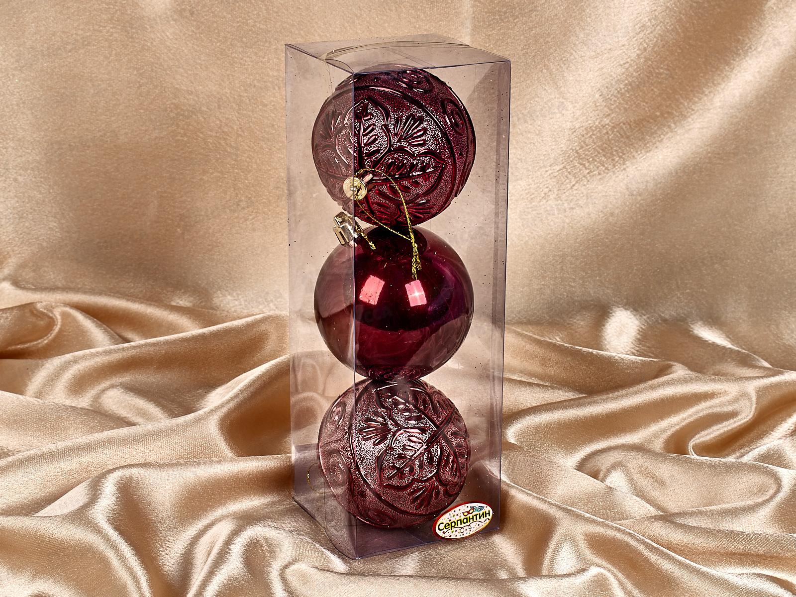 Набор елочных шаров 3шт "Микс фактур" 8см темный рубин 201-0847
