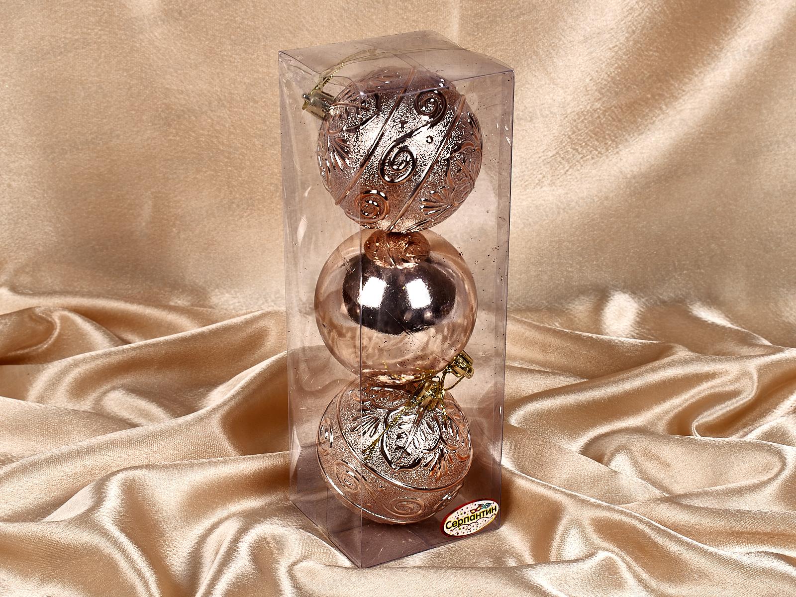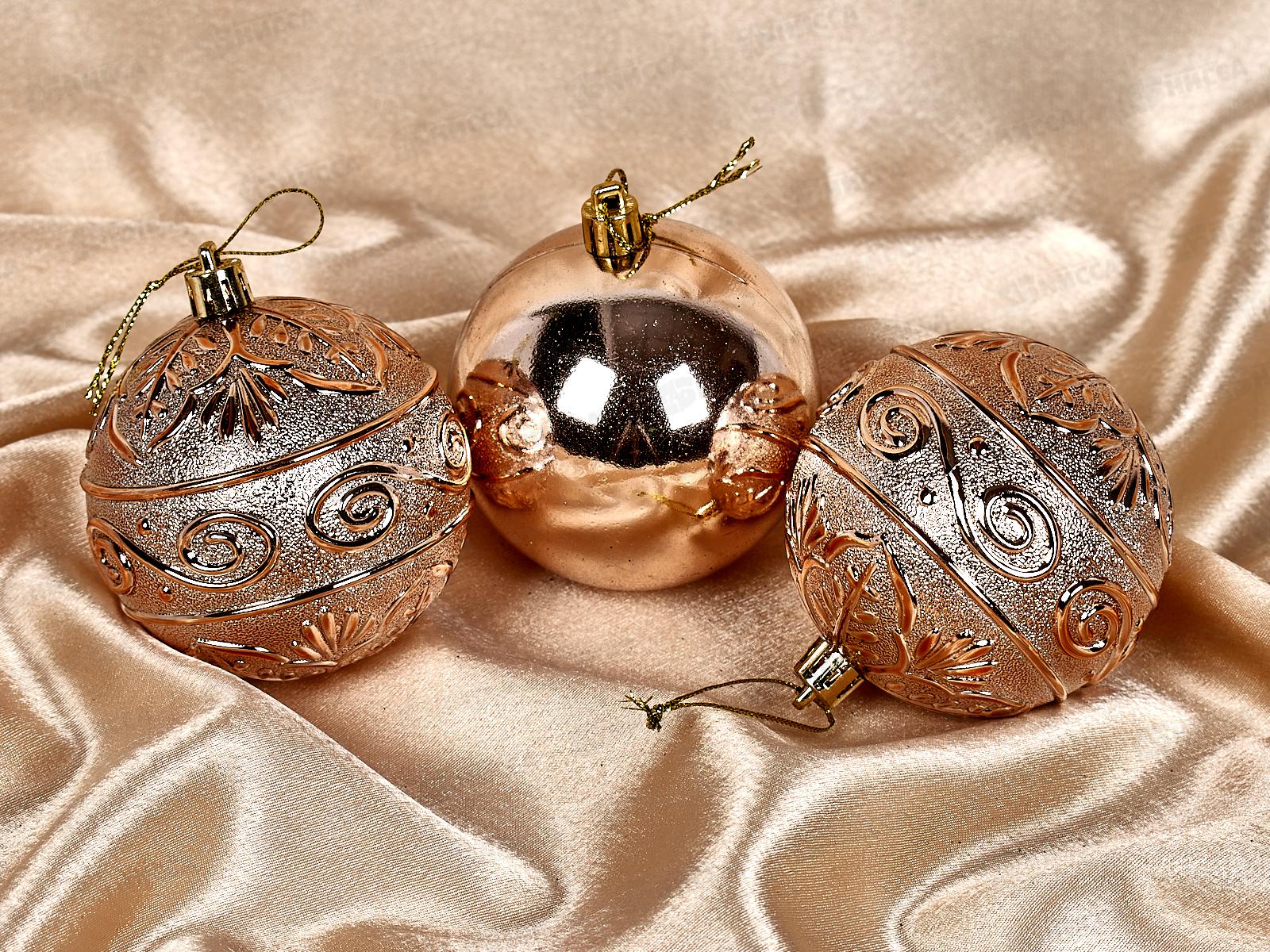 Набор елочных шаров 3шт "Микс фактур" 8см шампань 201-0845