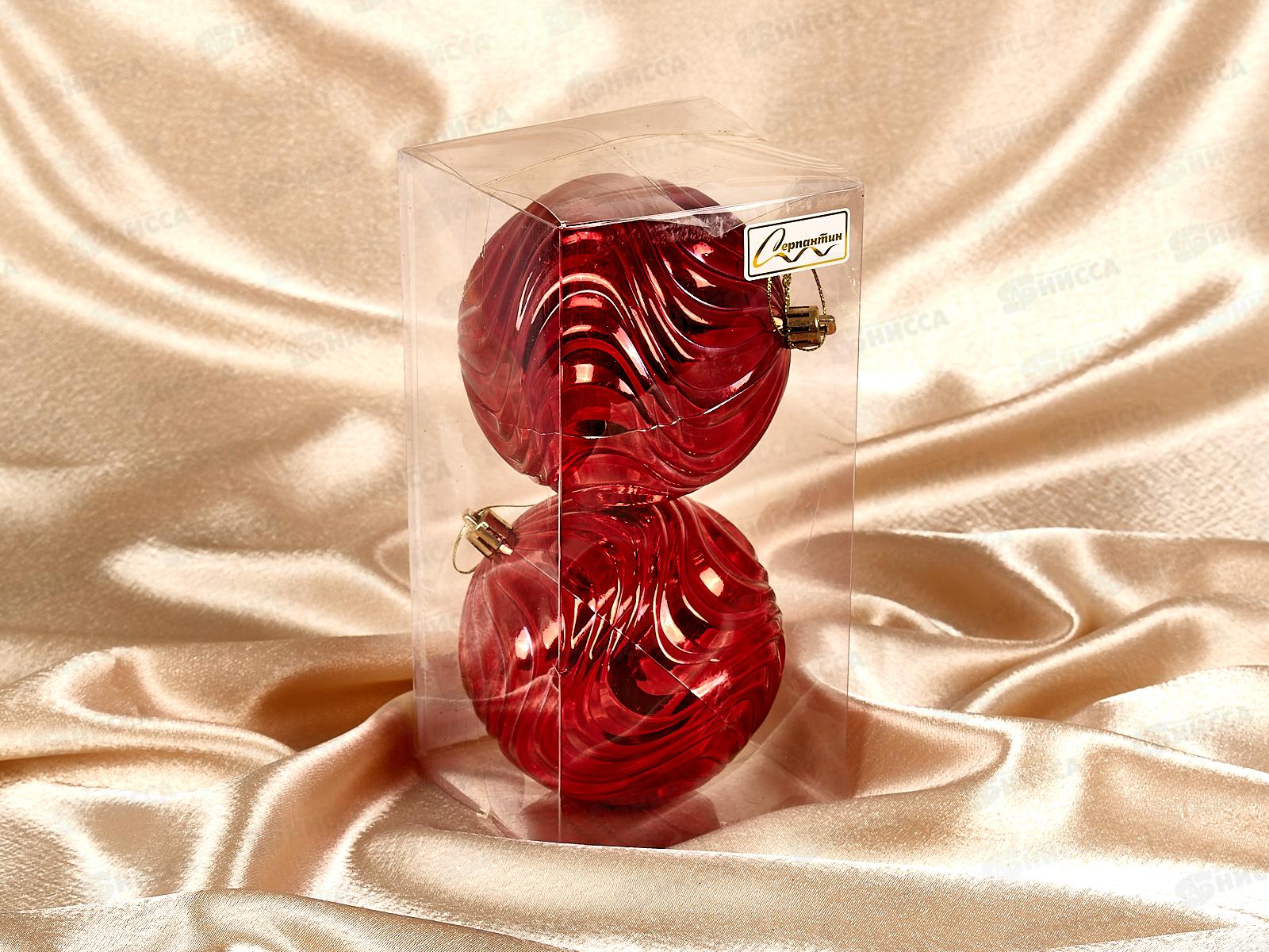 Набор елочных шаров 2шт "Рельеф" 10см красный 201-1766