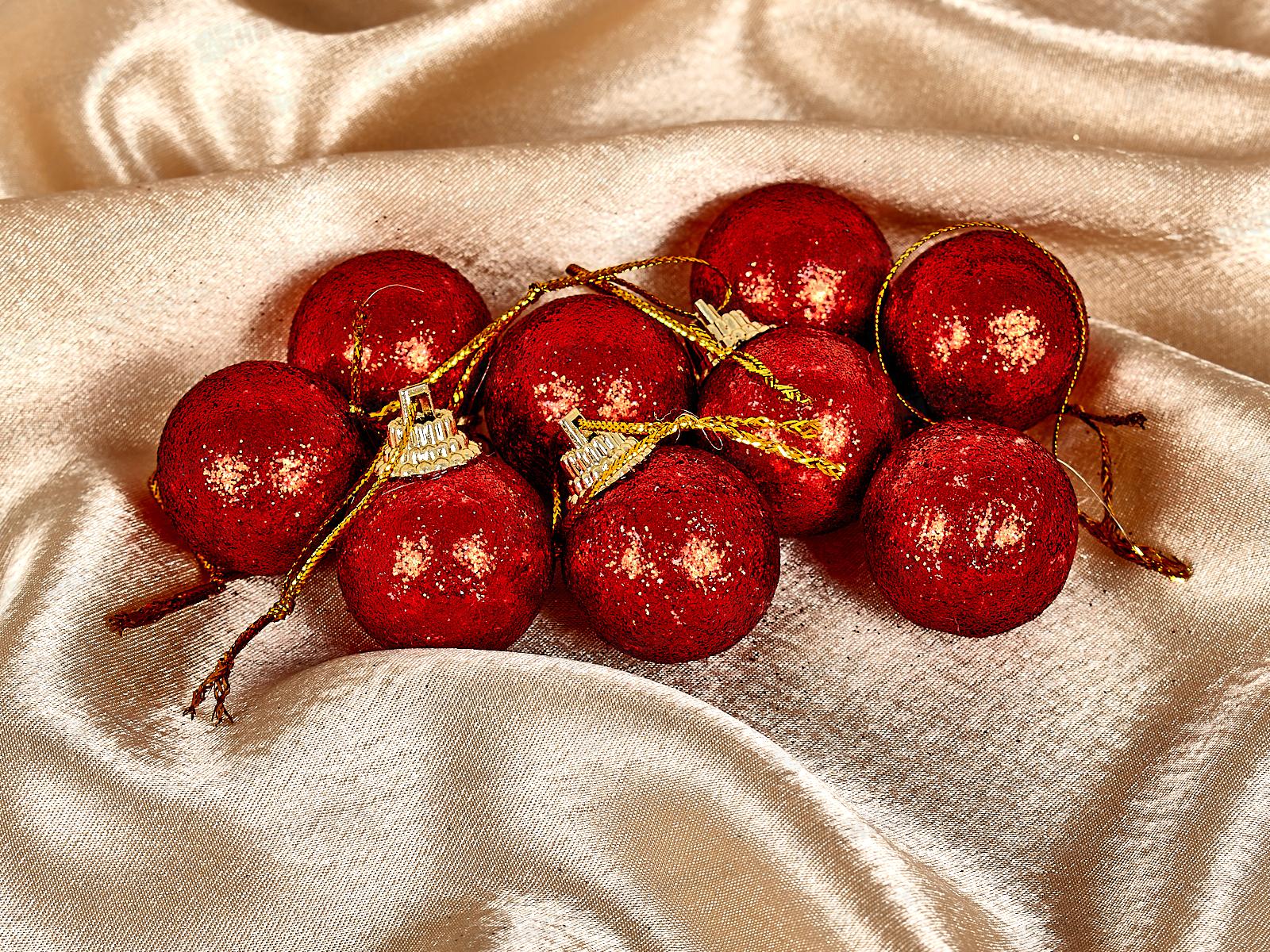 Набор елочных шаров 9шт "Блестящее напыление" 3см красный 201-0526