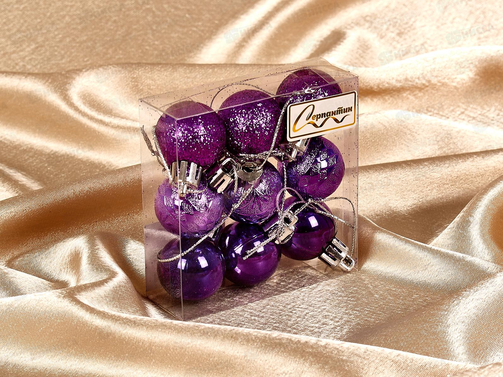 Набор елочных шаров 9шт "Микс фактур" 3см фиолетовый 652-349