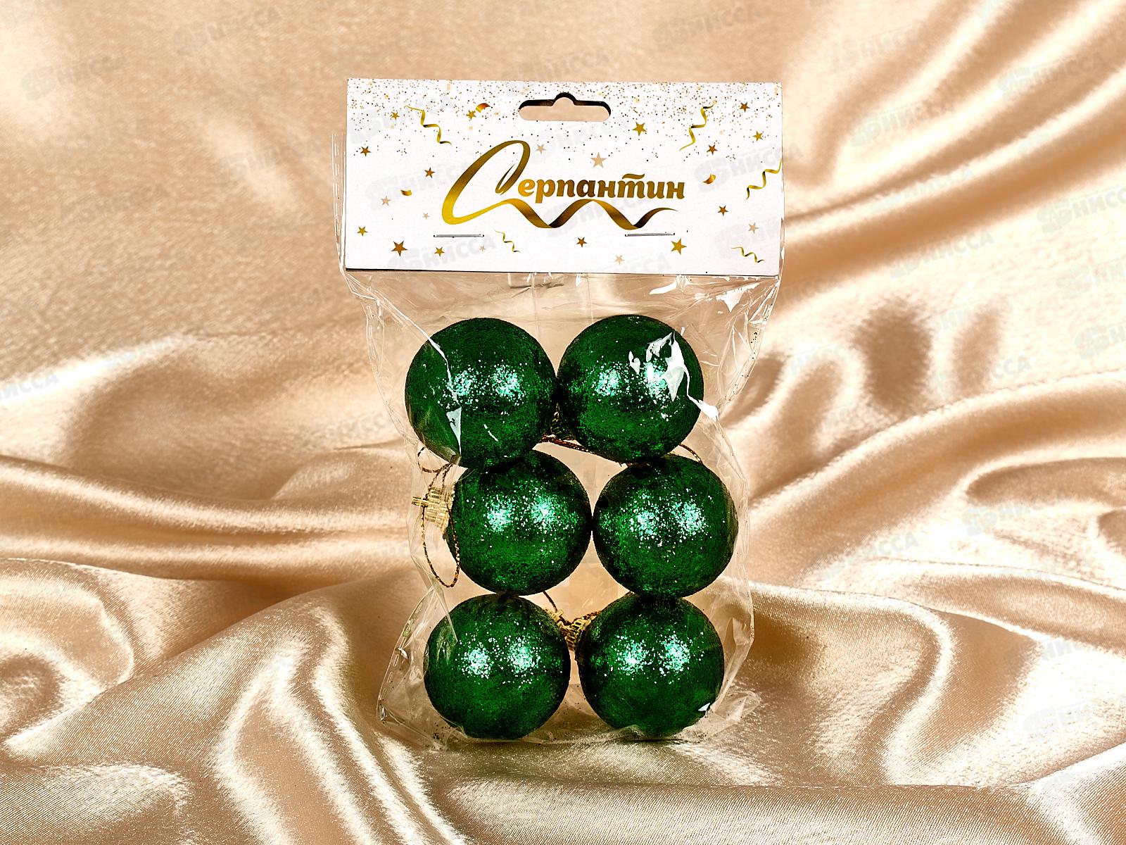 Набор елочных шаров 6шт "Блестящее напыление" 4см зеленый 652-011