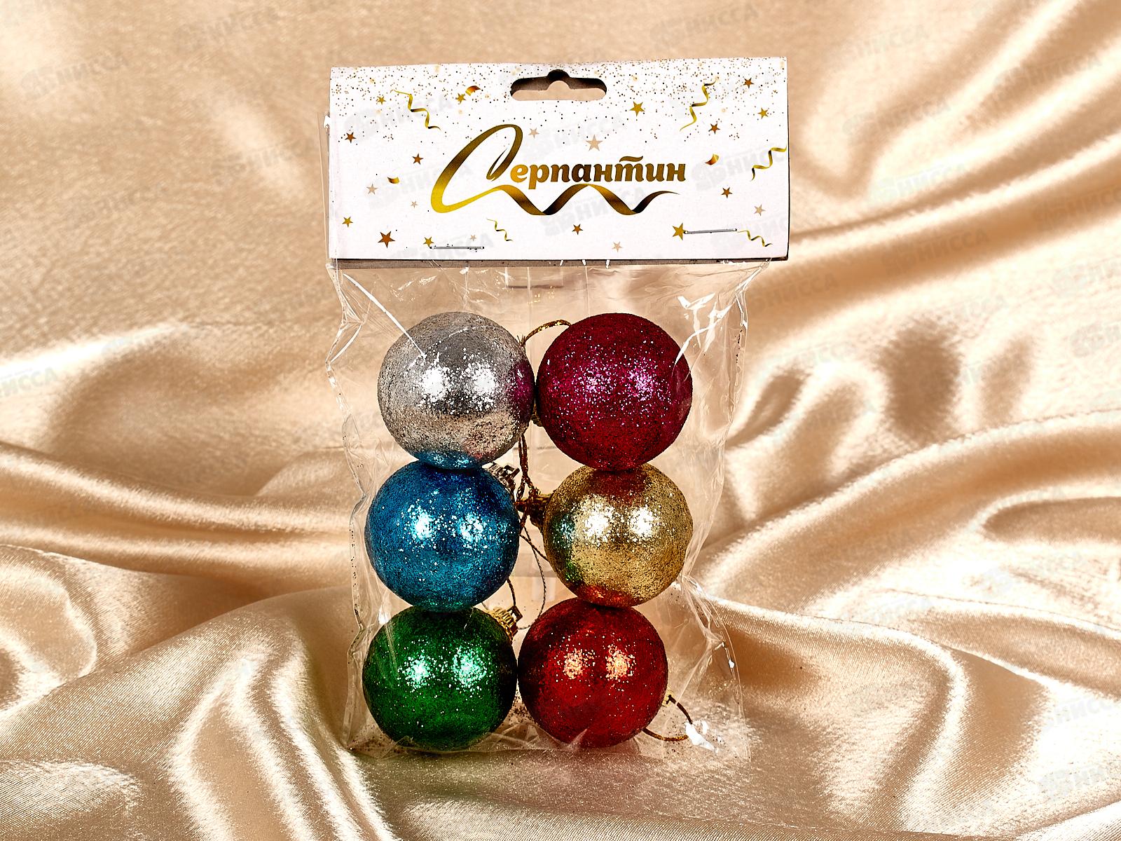 Набор елочных шаров 6шт "Блестящее напыление" 4см микс 652-010