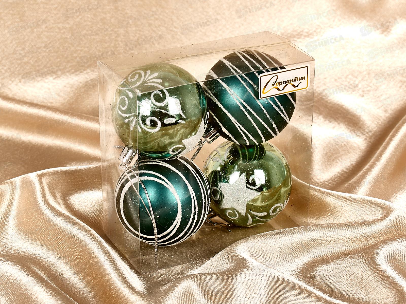 Набор елочных шаров 4шт "Снежная дымка" 6см нефрит 201-1152