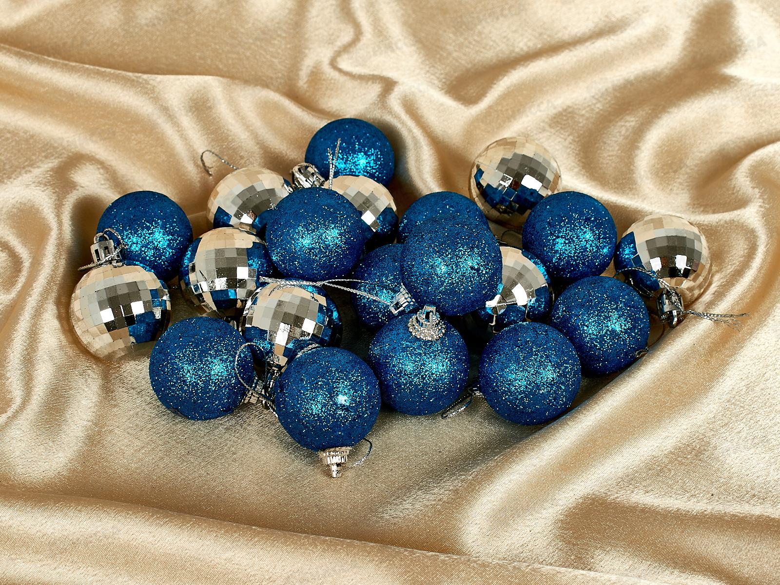 Набор шаров 20шт, 4см "Веселый праздник" голубой, серебряный, НУ-0464