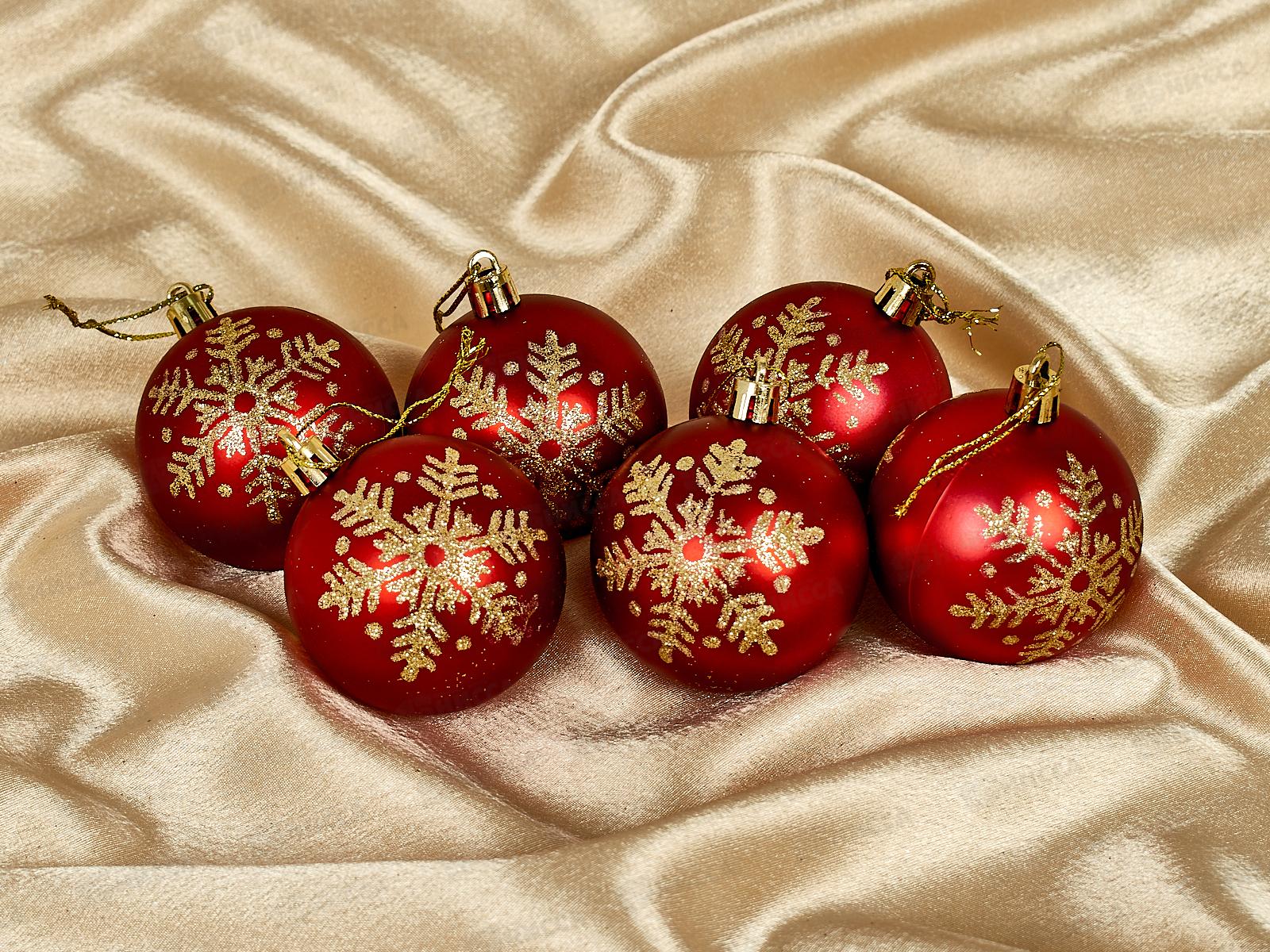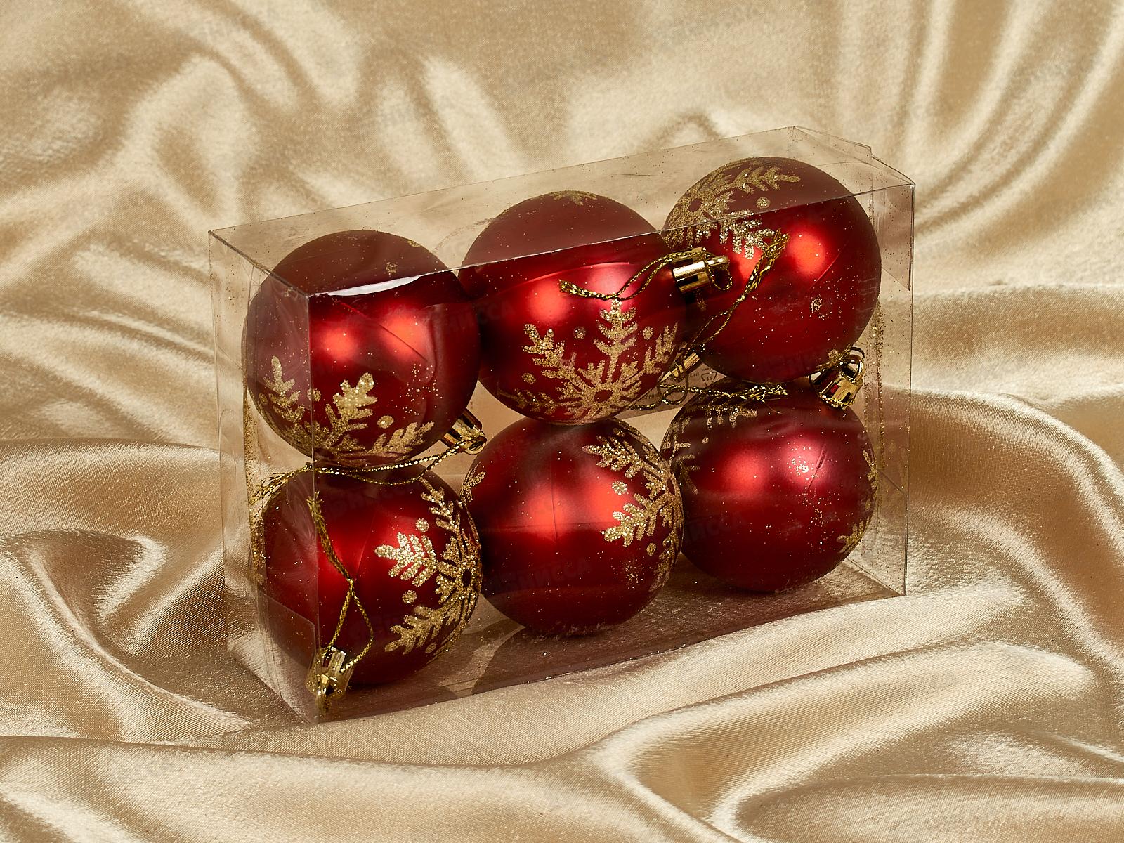 Набор шаров 6шт, 6см "Снежинка", красный матовый с узором, НУ-6954