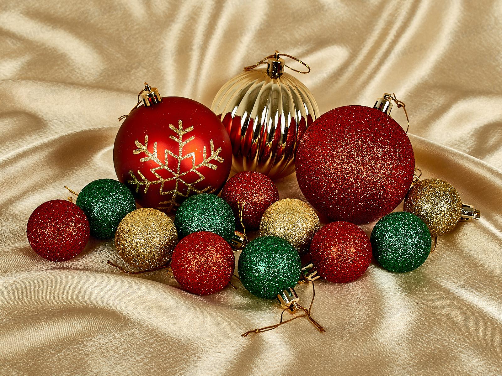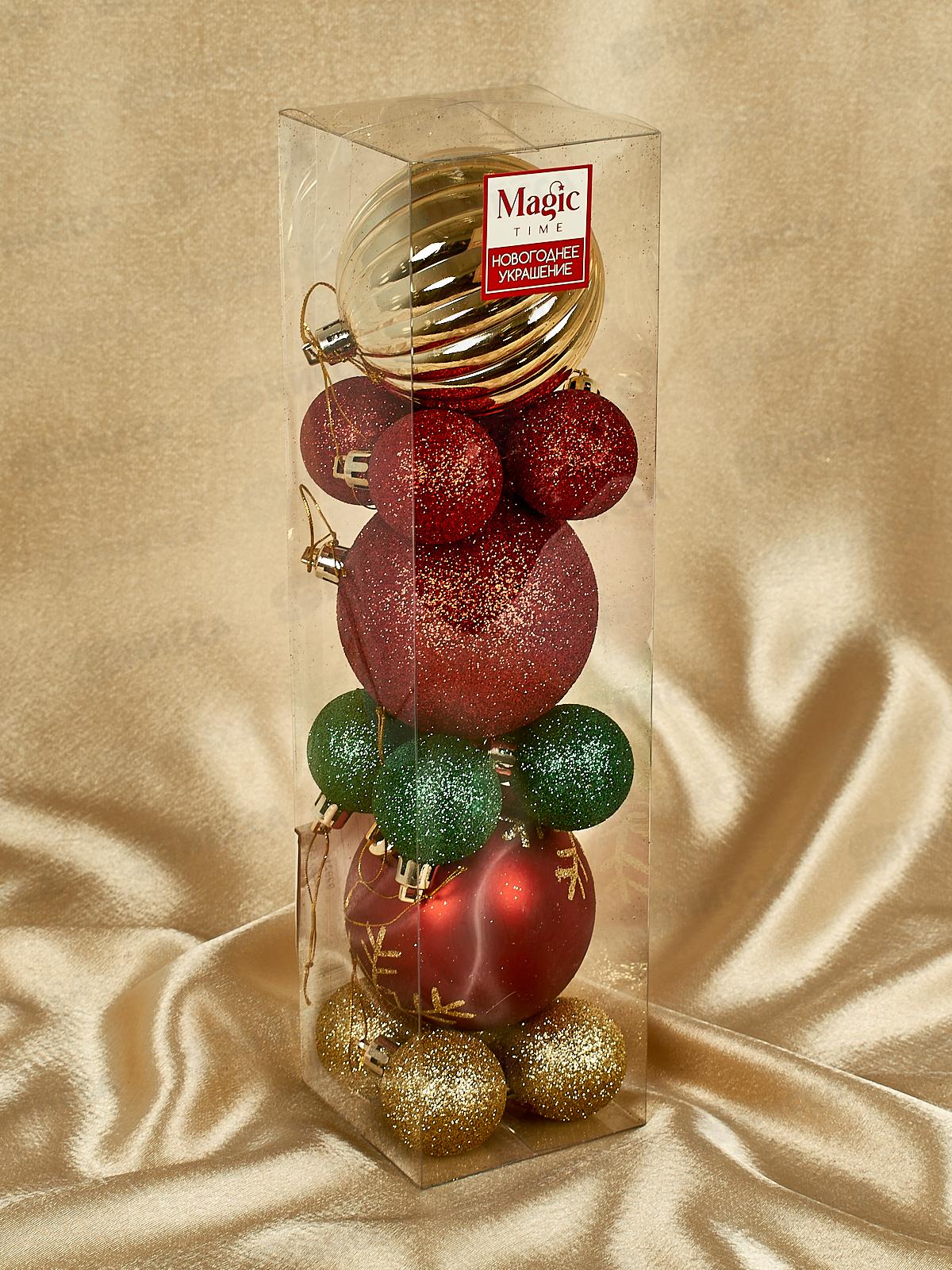 Состав набора: шар d - 8 см 3 шт, шар d - 4 см 12шт.