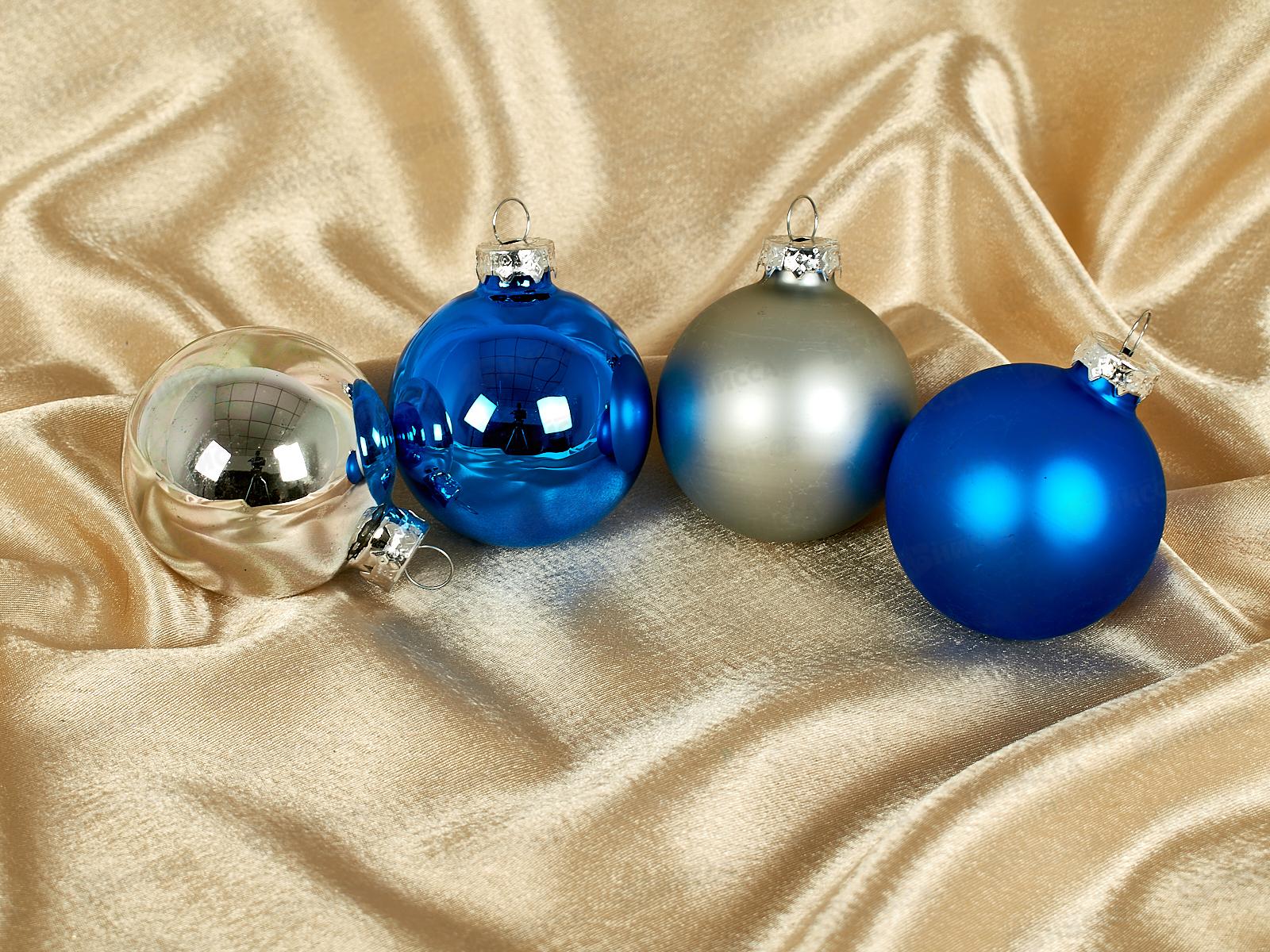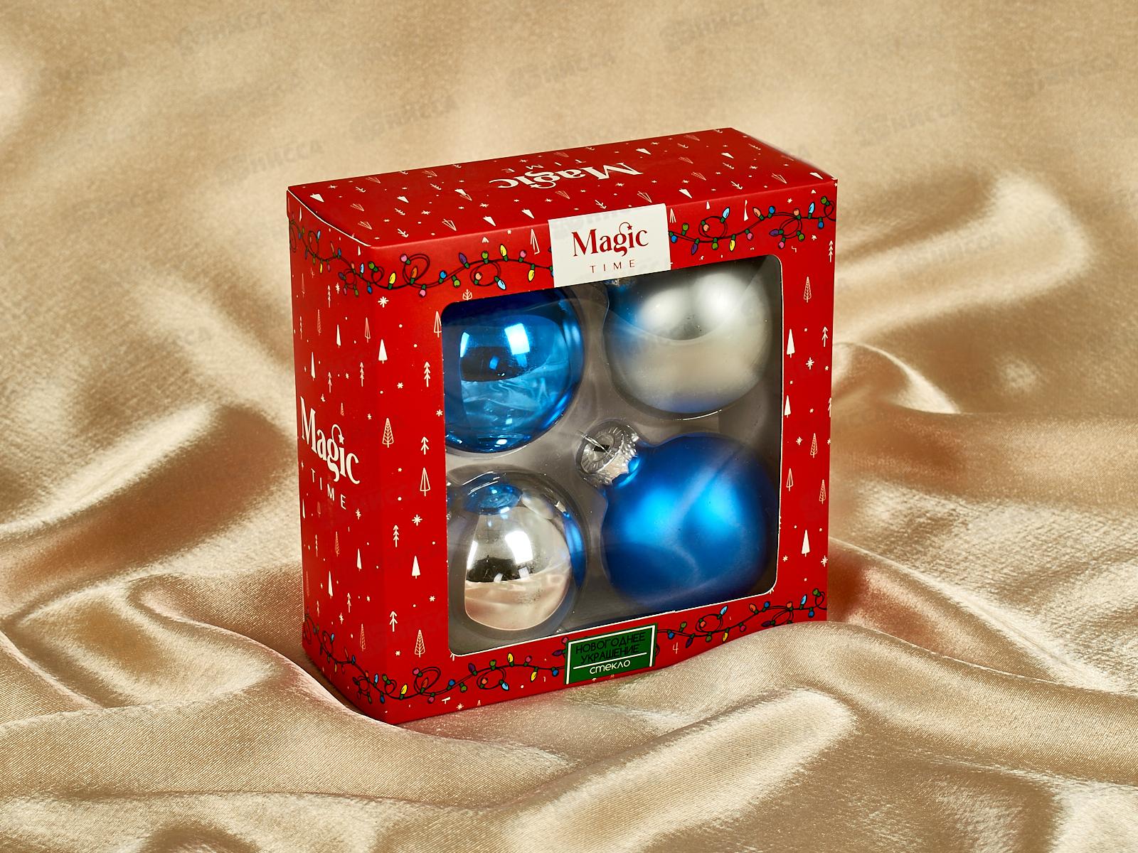 Набор шаров 4шт, 6см стекло "Синий с серебром", 90651