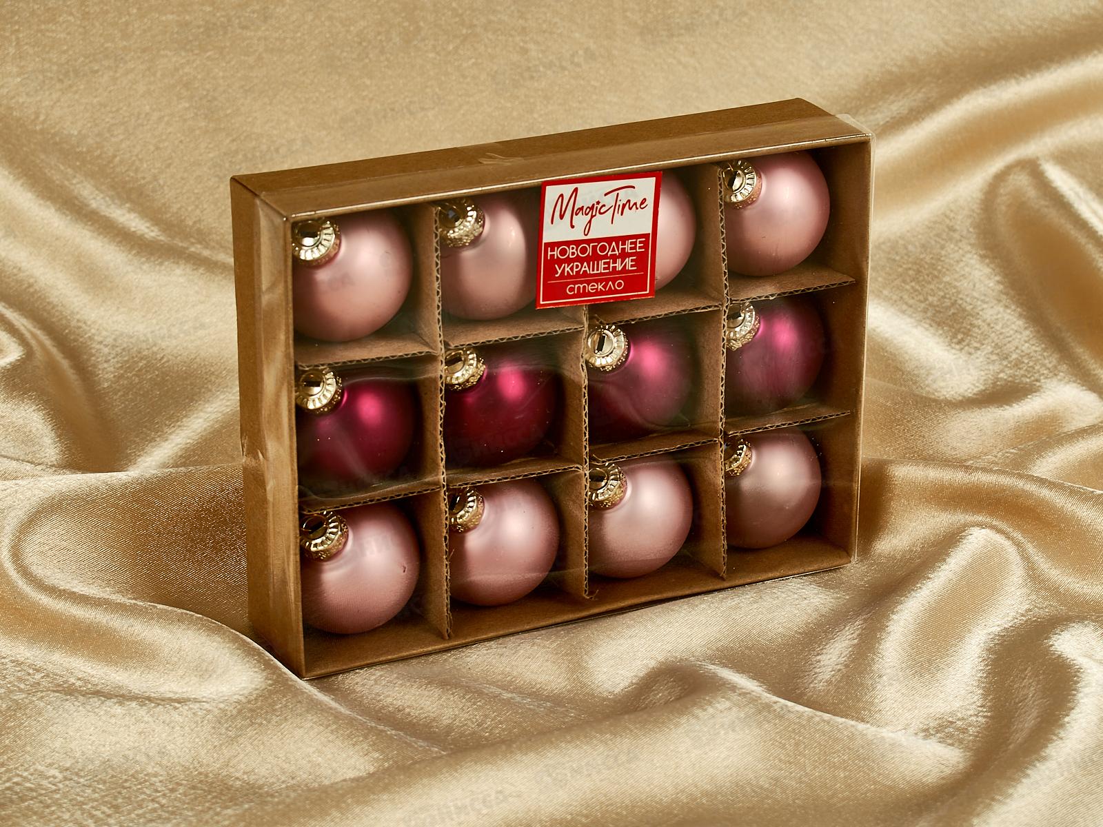 Набор шаров 12шт, 4см стекло "Розовые оттенки", 88040