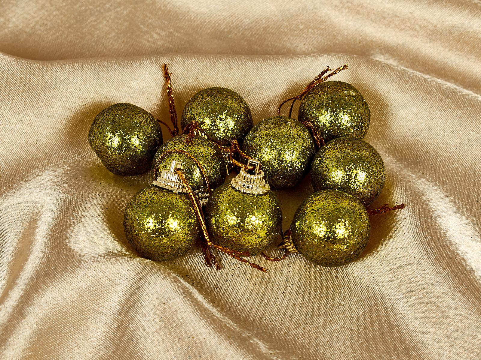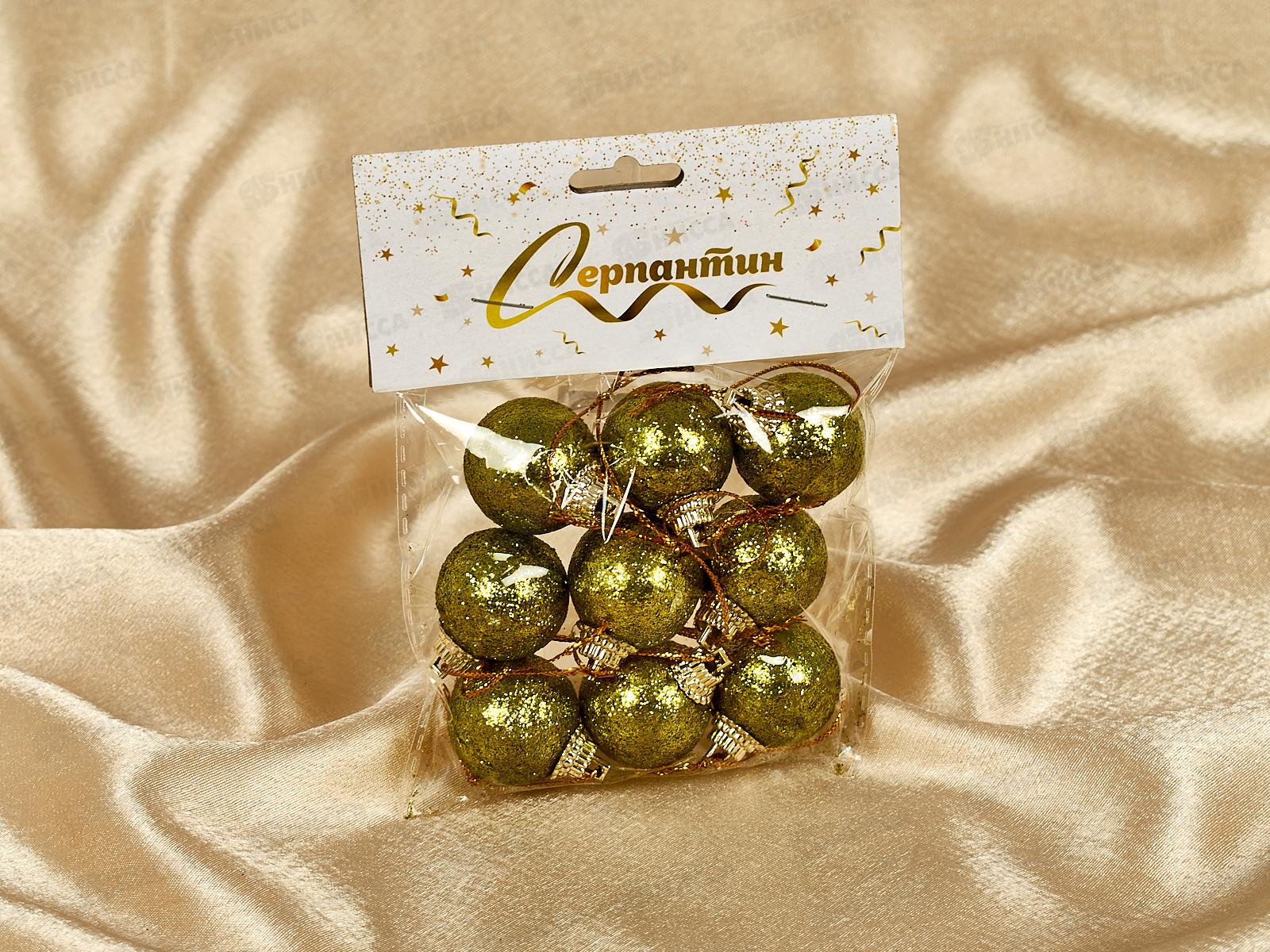 Набор елочных шаров 9шт "Блестящее напыление" 3см зеленый 201-0530