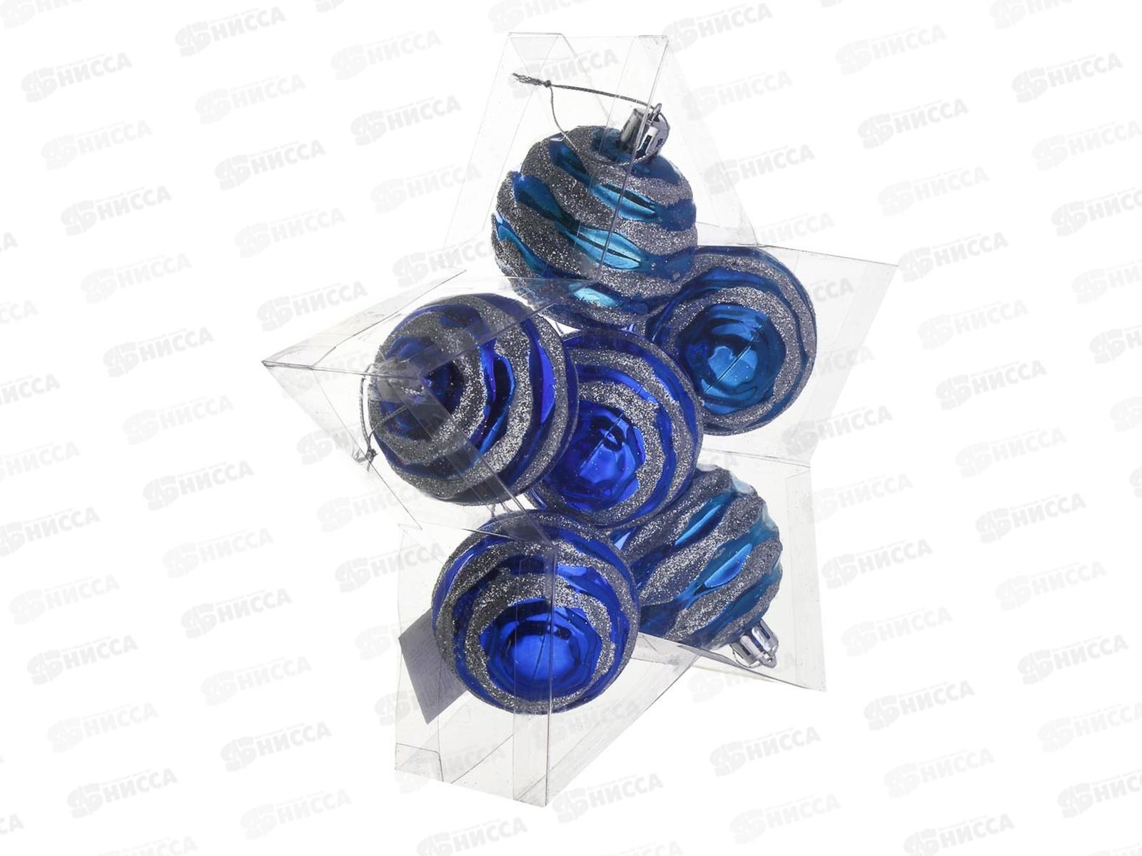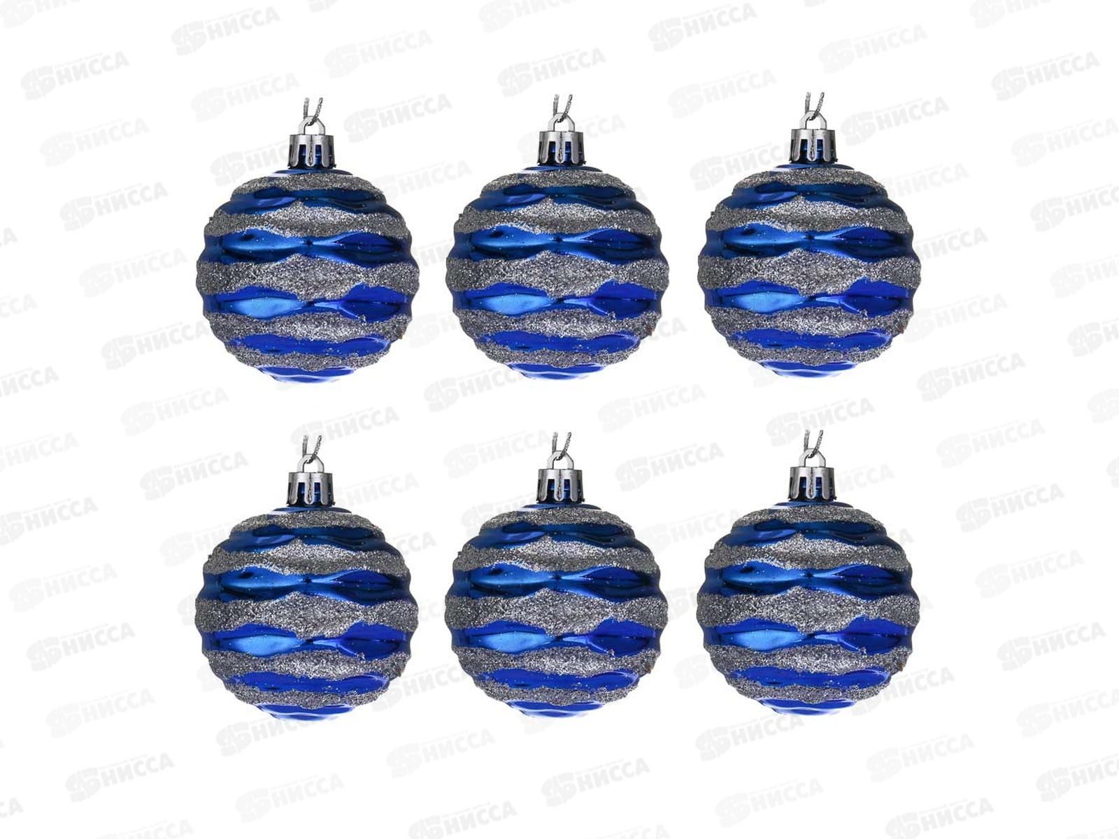 Набор шаров 6см, 6шт синий-серебро 26-195