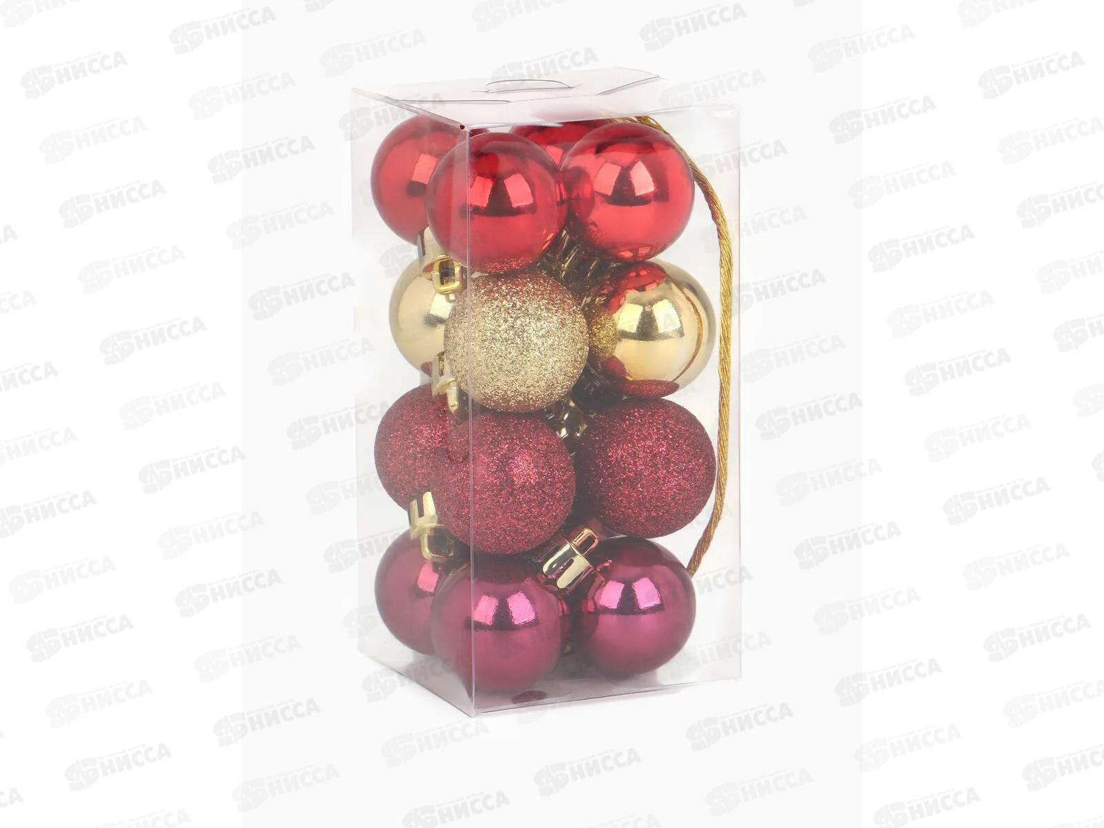 Набор елочных шаров 16шт, d-3см,пласт,винный,золот,красн 9489969