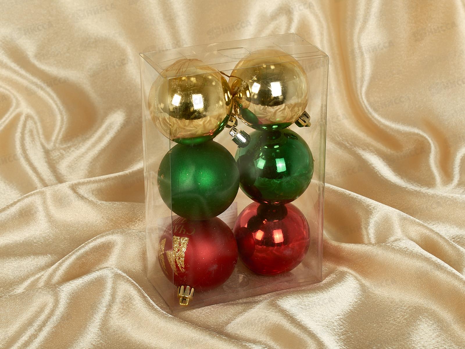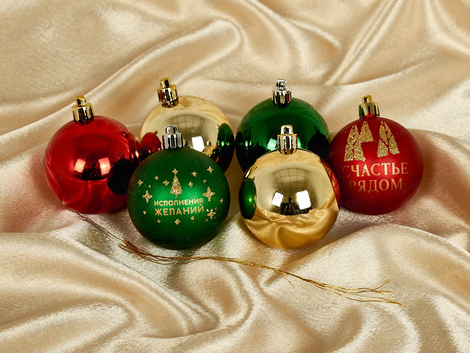 Набор елочных шаров 6шт "Счастья рядом!" d-6см зел/красн/золот 9490024