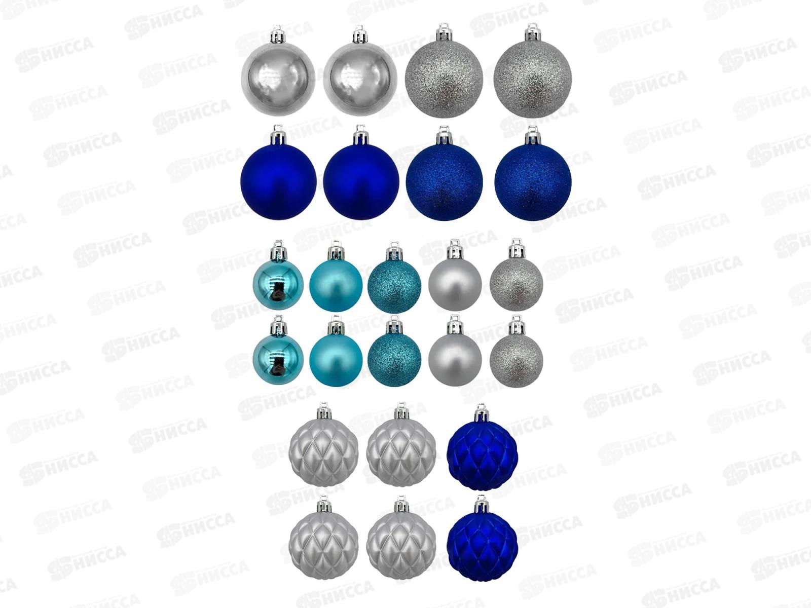 Набор шаров 24шт, Синий, Серебряный в ассорт., 96259