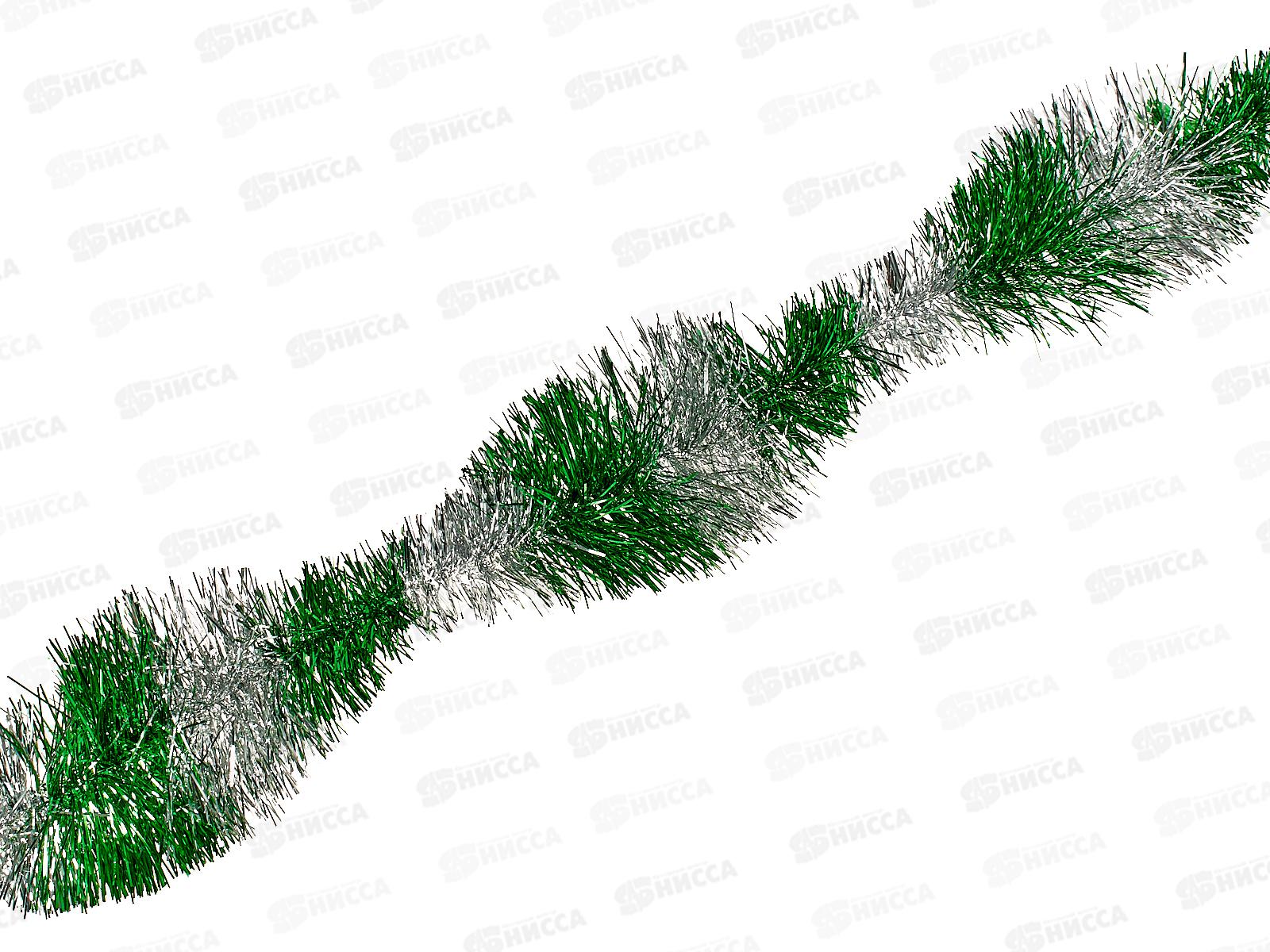 Мишура, 9см. х 2м., AL-13621 зеленый+серебро *600