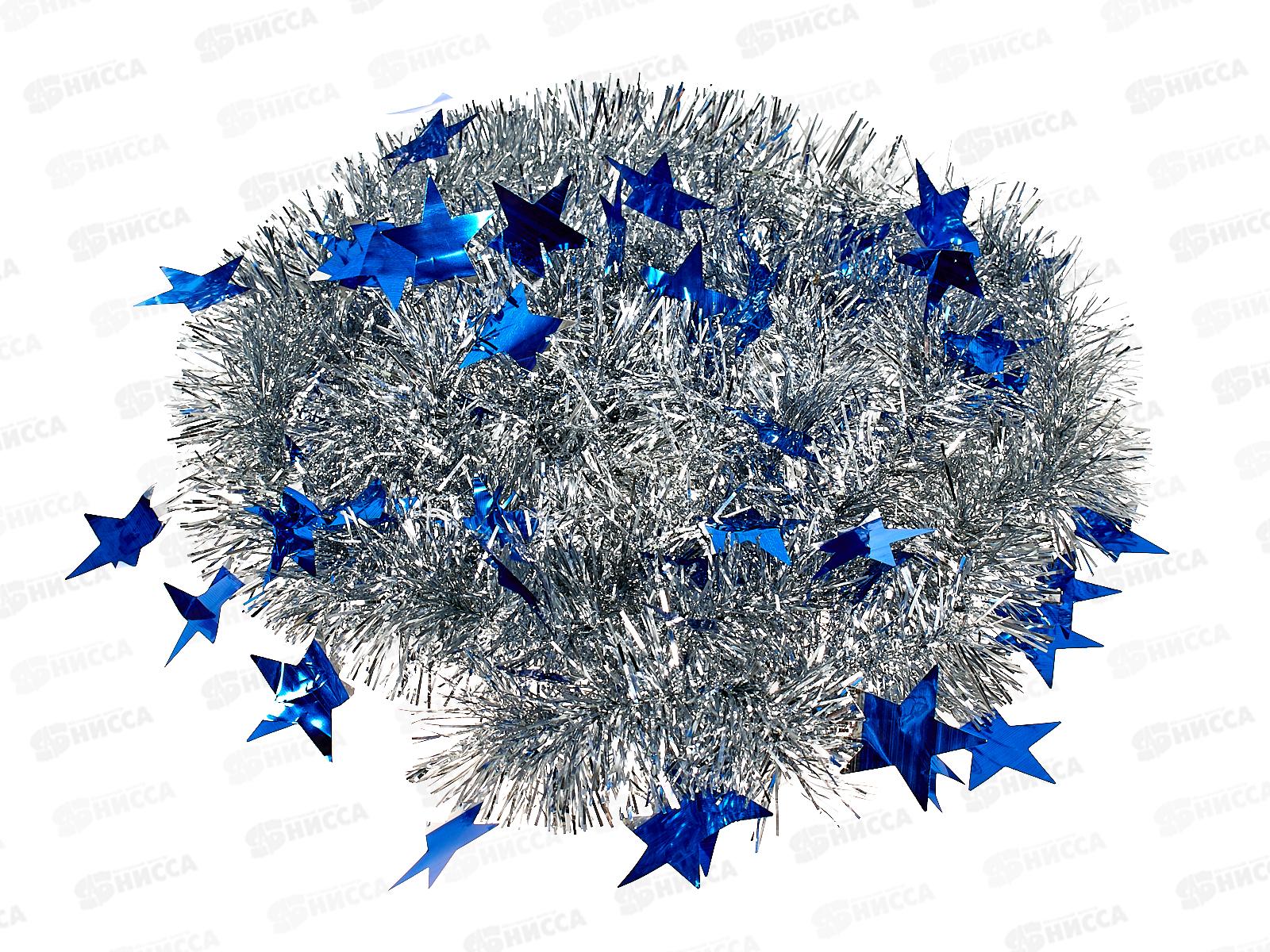 Мишура 002015 звездочки большие 5смх2м. серебро+синий, AL-3356 *600