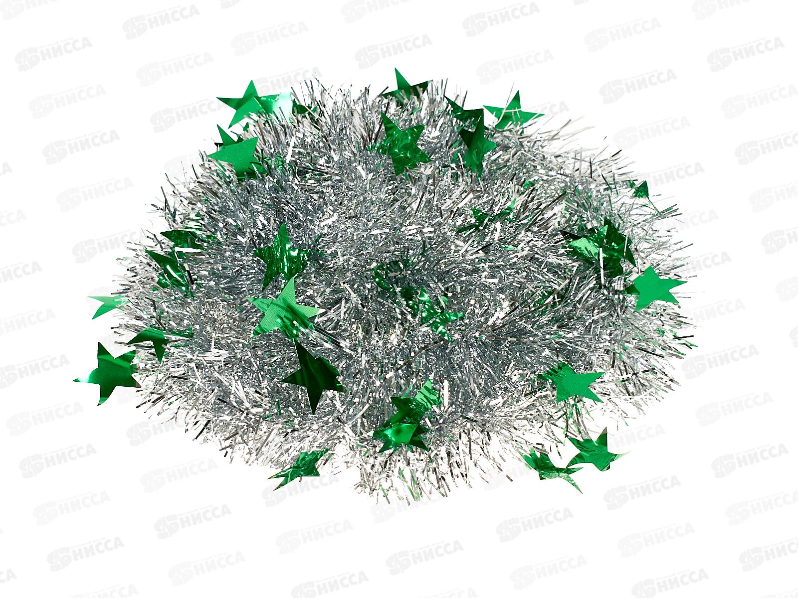 Мишура 002015 звездочки элементы 9смх2м. зеленый+серебро, AL-3352, *360