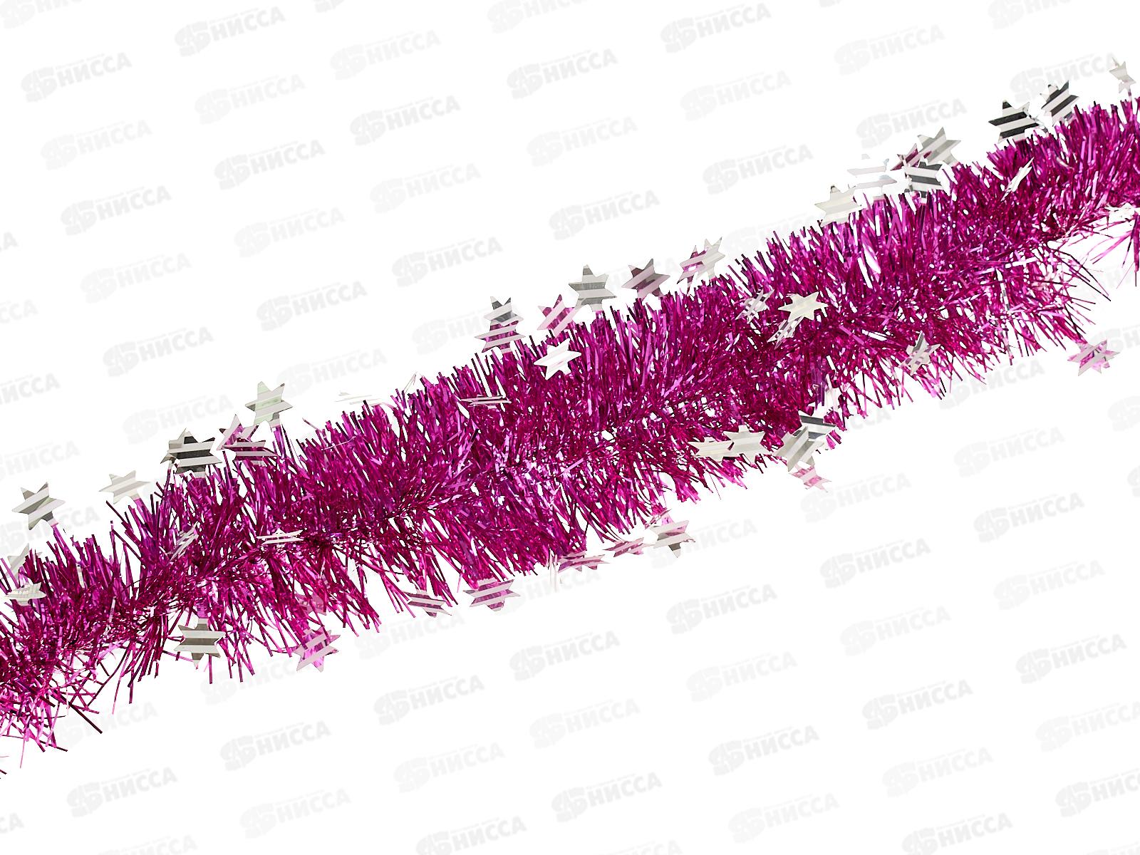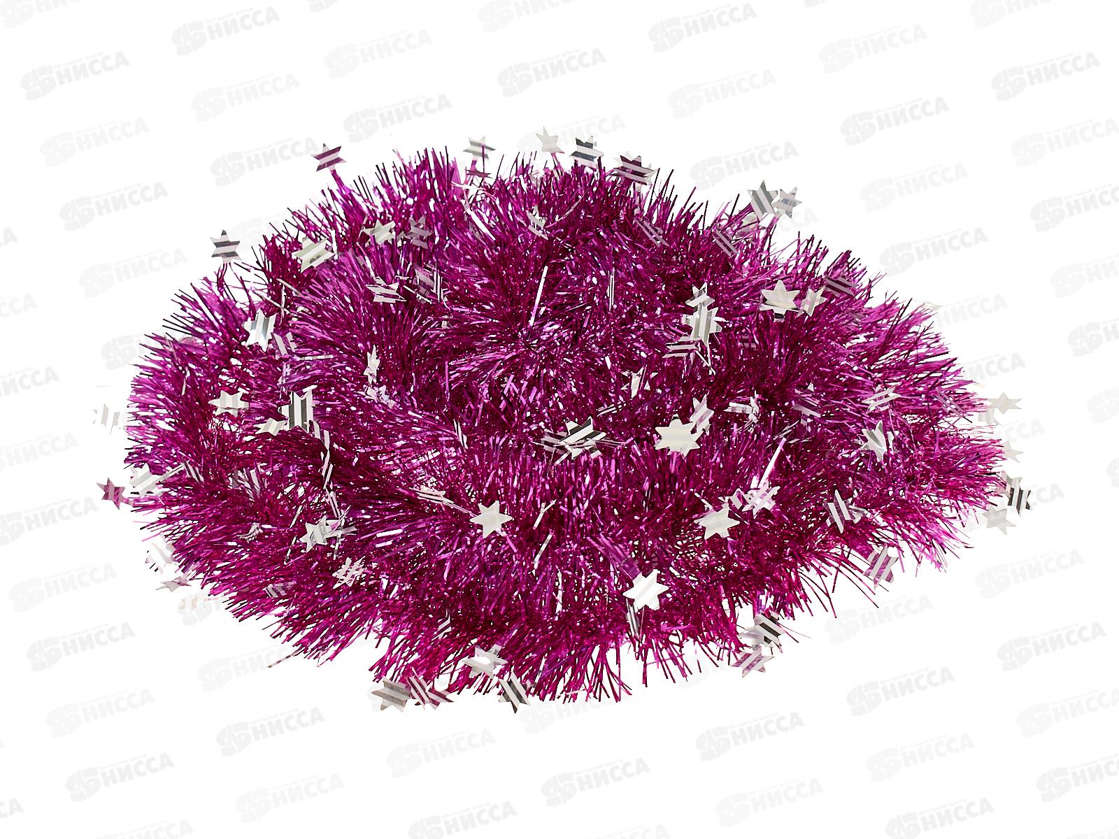 Мишура 002015 5см х 2м , AL-8016, сиреневый с белыми звездами*600